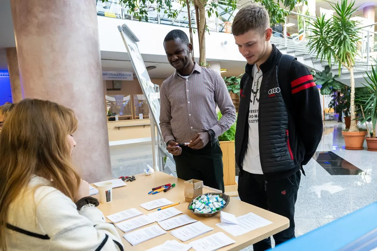 – Z myślą o uczestnikach Student EXPO przygotowaliśmy m.in. tablicę, na której można było przypinać karteczki z wyzwaniami czekającymi potencjalnie na tych, którzy wyjeżdżają na studia czy dłuższą wymianę do innego kraju – mówił Temitope Francis. Zdaniem doktoranta UWM warto dzielić się tym, co może spędzać sen z powiek, bo pozwala to oswoić różne sytuacje. – Nasza zabawa czasami prowokowała do rozmów, podczas których mogliśmy wymienić swoje doświadczenia czy obawy. Ja pochodzę z Nigerii, mieszkam w Olsztynie od ponad roku i jednym z największych wyzwań jest dla mnie biurokracja – to, że w Polsce trzeba długo czekać na wiele rzeczy. Niestety nie zawsze też mogę efektywnie komunikować się po angielsku.