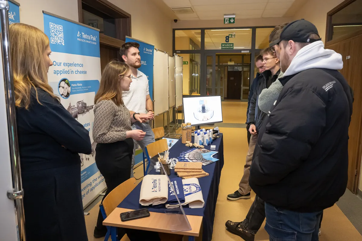Pracodawcy biorący udział w Targach Pracy WNT to firmy lokalne, z którymi wydział współpracuje na co dzień, ale warto podkreślić, że ich produkty często trafiają na rynki całego świata. Ich przedstawiciele chętnie dzielili się wiedzą na temat ścieżek kariery oraz tym, jak funkcjonują. Jedną z firm, która poszukiwała pracowników i stażystów, był zajmujący się produkcją wyrobów mleczarskich Polmlek.