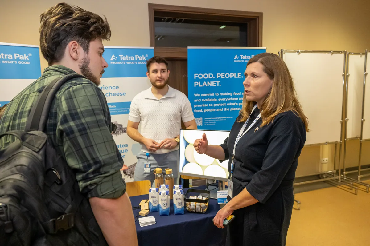 – Poszukujemy stażystów i praktykantów, ale także mamy oferty pracy dla automatyków i mechaników. Współpraca z wydziałem układa nam się bardzo dobrze i jesteśmy otwarci na dalsze działania w tym zakresie. Jesteśmy na targach pracy już drugi raz. W zeszłym roku studenci odwiedzili także nasz zakład i z tego, co wiem, byli bardzo zadowoleni z wizyty. W tym roku również zapraszamy do nas – mówi Aneta Karczewska-Gobis, specjalistka ds. szkoleń i strategii rozwoju HR w firmie Polmlek.