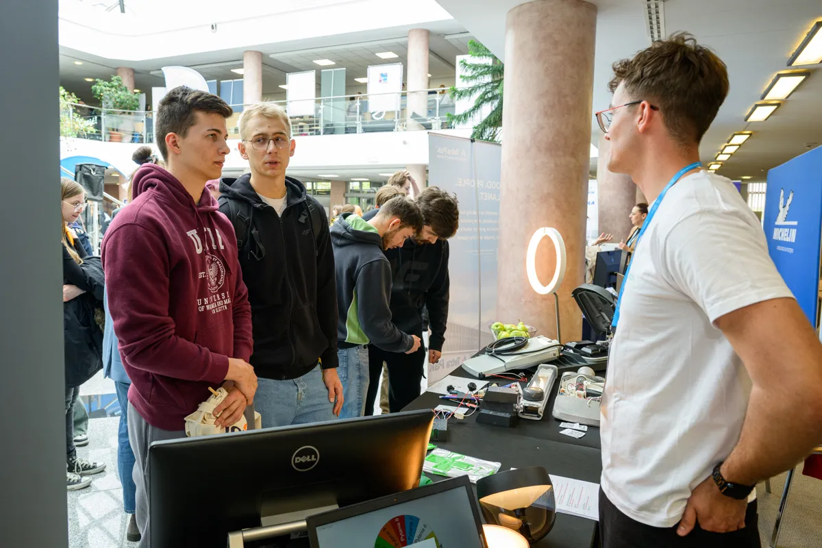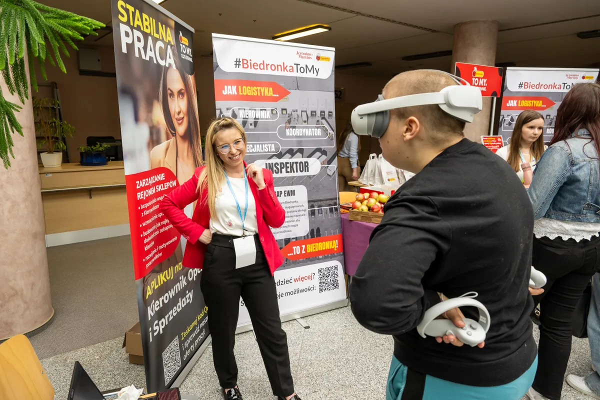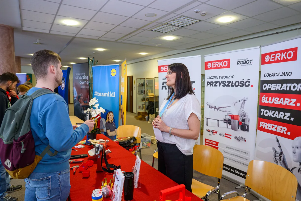 Michał Gumkowski jest absolwentem UWM. Na Targach Pracy reprezentował firmę Progression. Swoich młodszych kolegów i koleżanki chciał zainspirować do tego, aby zainteresowali się kompetencjami sztucznej inteligencji, obejmującymi zarówno umiejętności techniczne, jak i miękkie, które na rynku pracy są coraz cenniejsze.