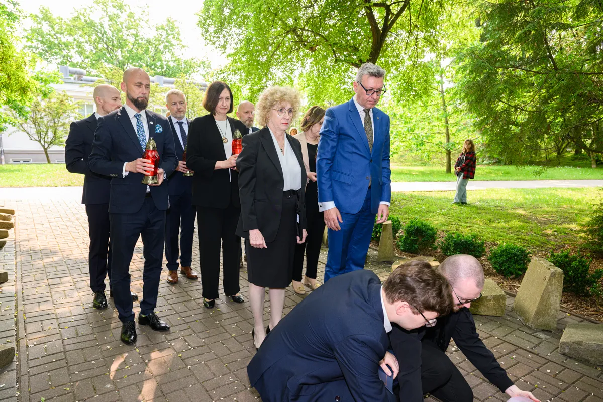 Przed uroczystością, zgodnie z uczelnianym zwyczajem, władze Uniwersytetu złożyły kwiaty pod tablicą upamiętniającą tragiczne wydarzenia z II wojny światowej, które rozegrały się na terenie Kortowa, gdzie znajdował się wówczas szpital psychiatryczny.