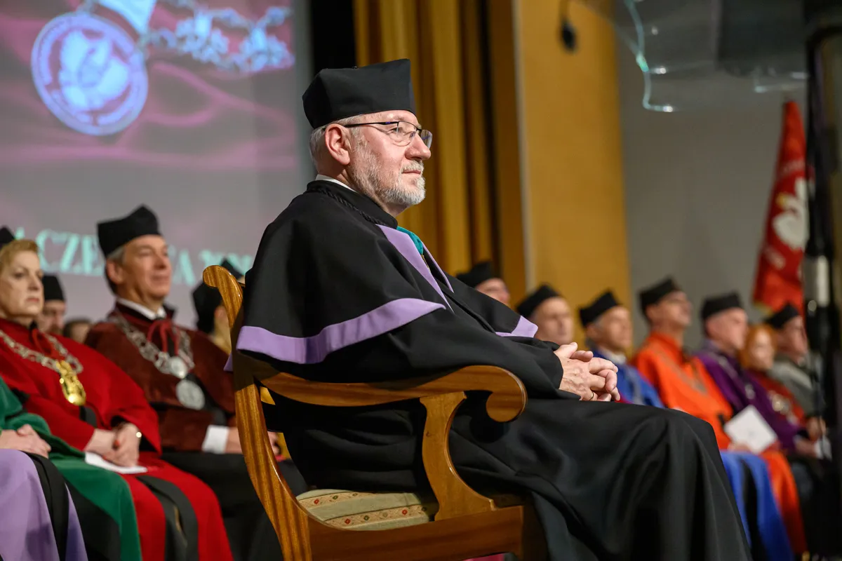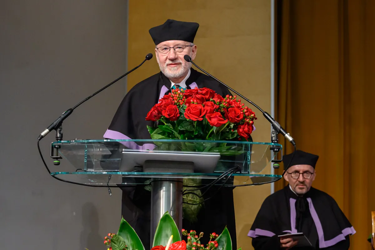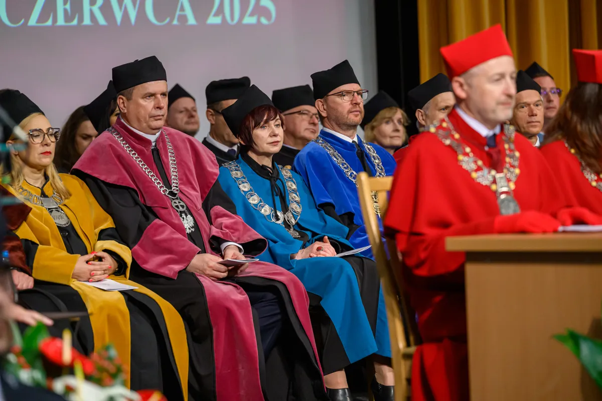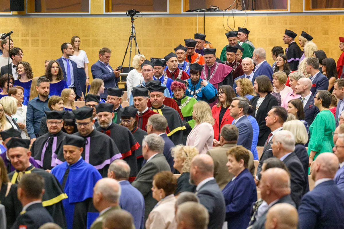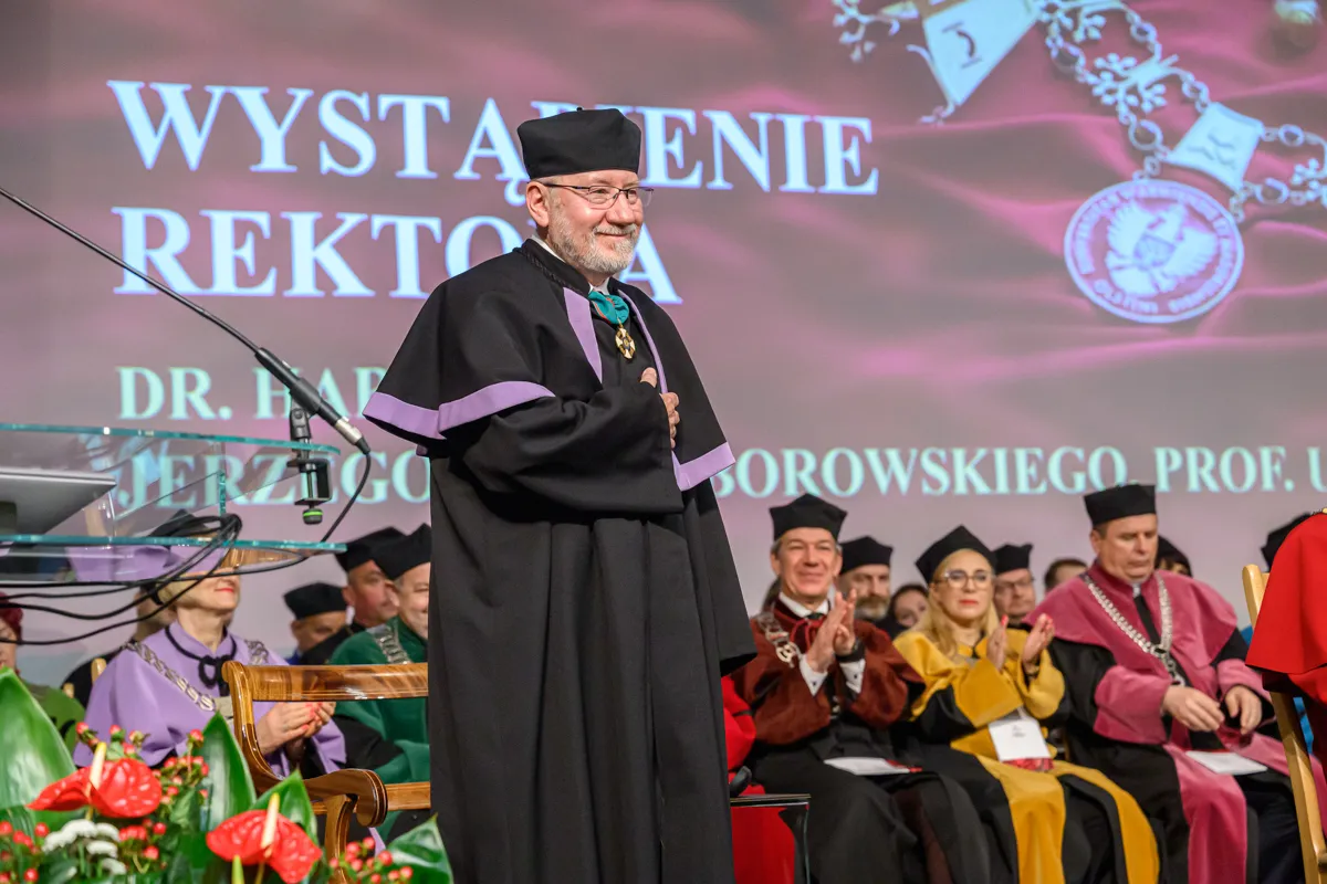 – Stojąc tu dzisiaj przed wami czuję dumę i odpowiedzialność. Dumę z dotychczasowych osiągnięć naszego Uniwersytetu, efektu pracy wielu osób. Ale i odpowiedzialność – by kontynuować tę drogę z odwagą, mądrością i pokorą wobec wyzwań przyszłości – zaznaczył w swoim wystąpieniu prof. Jerzy Przyborowski. – Uczelnia to nie tylko budynki, infrastruktura badawcza, programy studiów czy laboratoria. Uniwersytet żyje dzięki ludziom tworzącym wspólnotę – profesorom i innym nauczycielom akademickim, którzy dzielą się wiedzą i pasją, doktorantom i studentom, którzy zadają trudne pytania oraz wszystkim tym, którzy codziennie budują tę instytucję z oddaniem i troską we wszystkich obszarach jej działalności. Bo jak powiedział Tadeusz Kotarbiński, wartość człowieka mierzy się tym, co daje z siebie innym. Dziękujemy tym, którzy swoją pracą, myślą i sercem budują wartość tego miejsca. Dziękuję naszym partnerom, samorządowcom, przedsiębiorcom i absolwentom za wsparcie i wspólną wspólną wizję rozwoju. Niech dzisiejsze święto będzie czasem refleksji, ale i nadziei. Niech inspiruje do dalszego rozwoju oraz umacnia nasze wartości: otwartość, odpowiedzialność, prawdę i wolność.