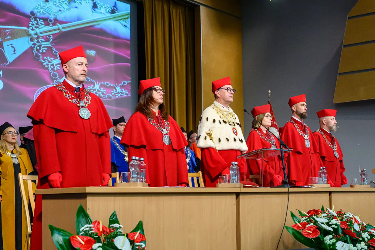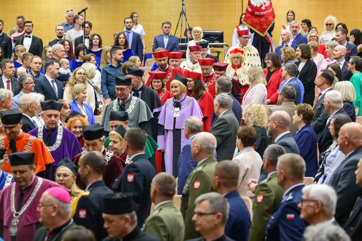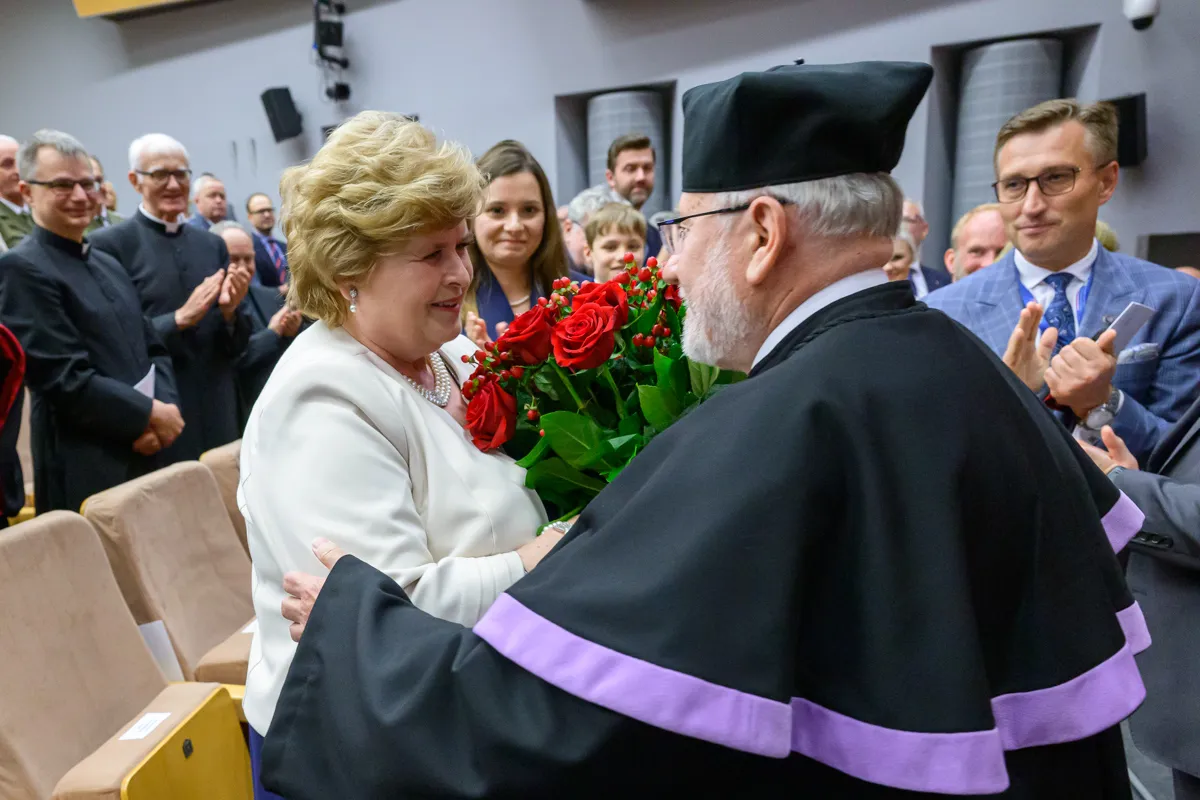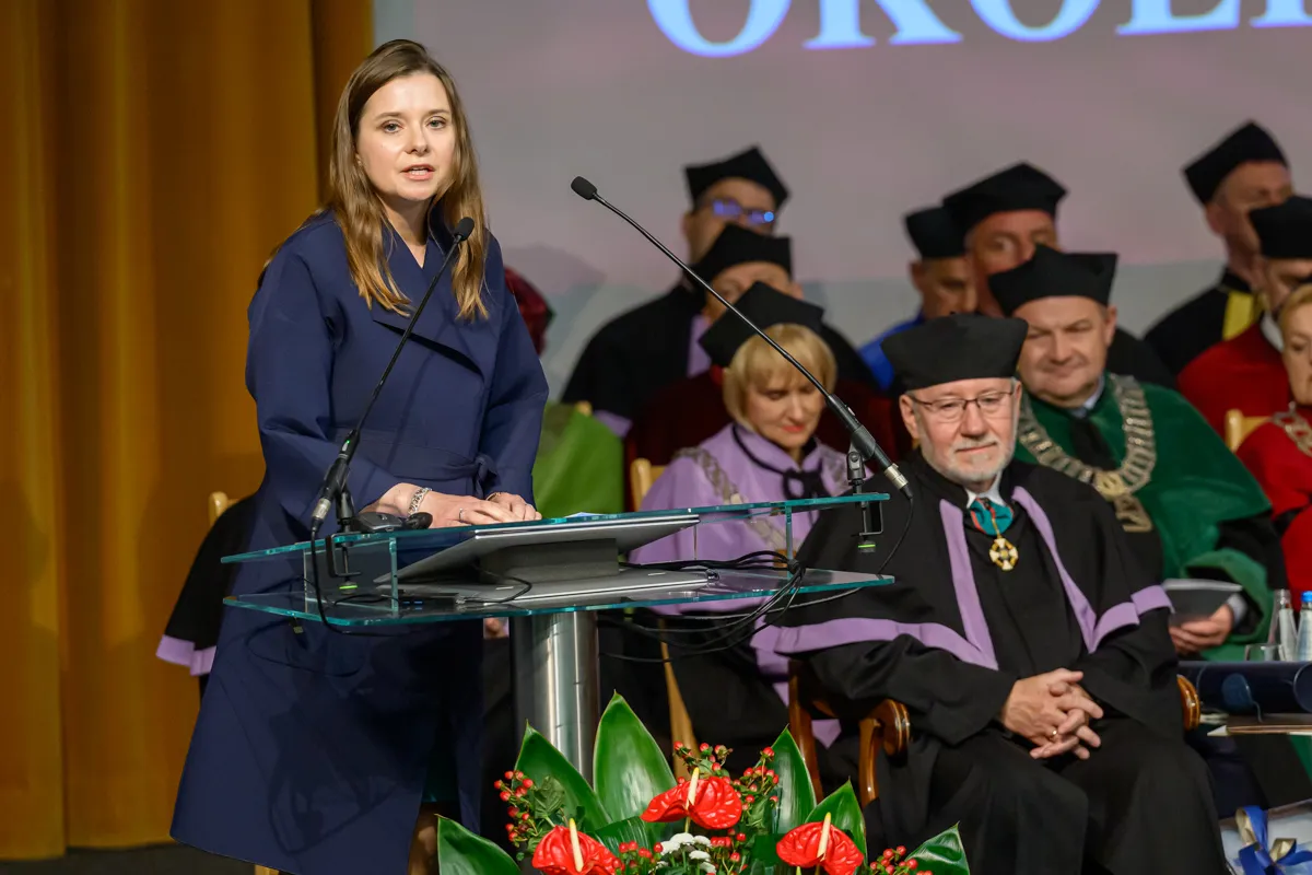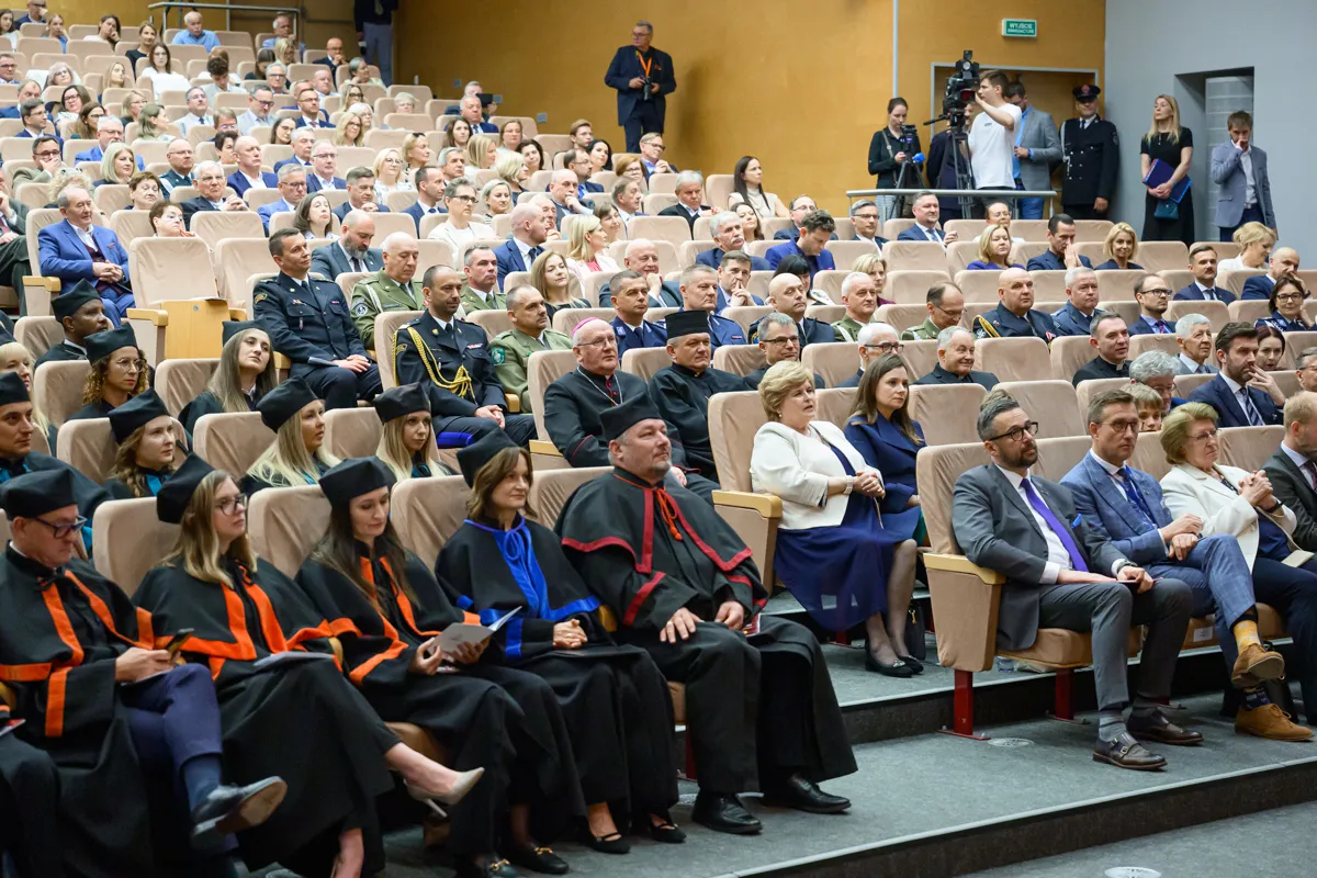 – Nasz Uniwersytet jest obecnie jedną z najważniejszych uczelni w Polsce. Łącząc tradycję z nowoczesnością, kształci tysiące studentów, zatrudnia wybitną kadrę naukową oraz dydaktyczną i rozwija się dynamicznie. Jestem niesamowicie dumna z naszej uczelni – zaznaczyła senator Ewa Kaliszuk. I dodała: – Zawsze z wielką uwagą przysłuchuję się wystąpieniom pana rektora, prof. Jerzego Przyborowskiego. Po wysłuchaniu dzisiejszego, odnoszę wrażenie, że szczególną uwagę pan rektor poświęcił kwestiom relacji, wspólnoty – temu, aby państwo czuli się zaopiekowani i bezpieczni. I ja za tę wrażliwość i troskę o dobrostan serdecznie dziękuję.