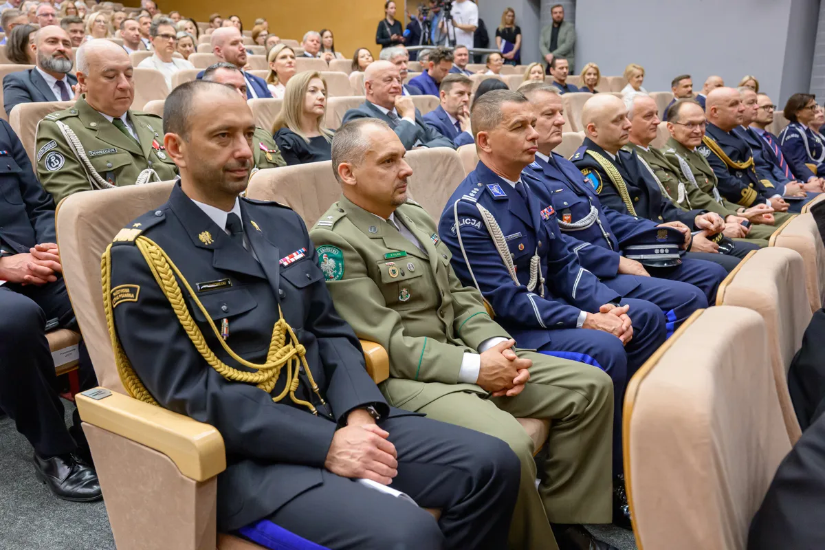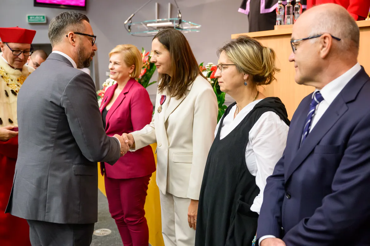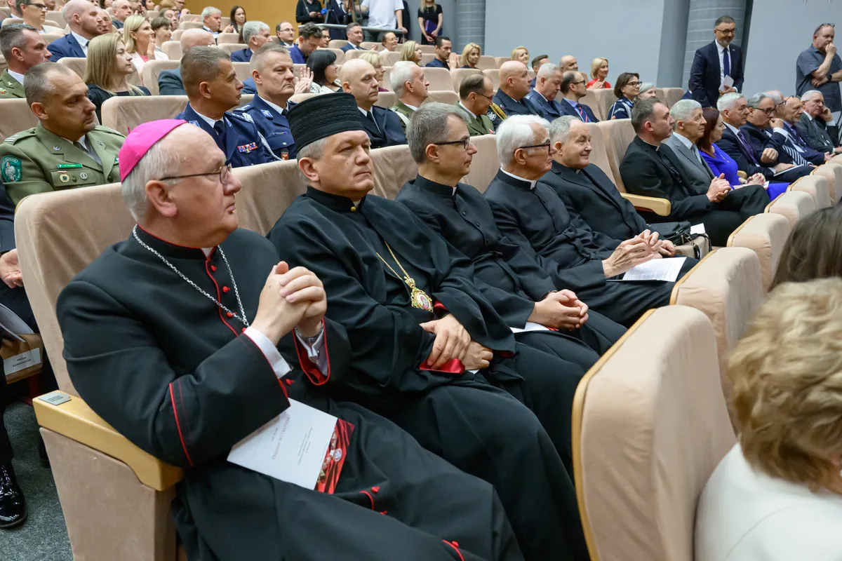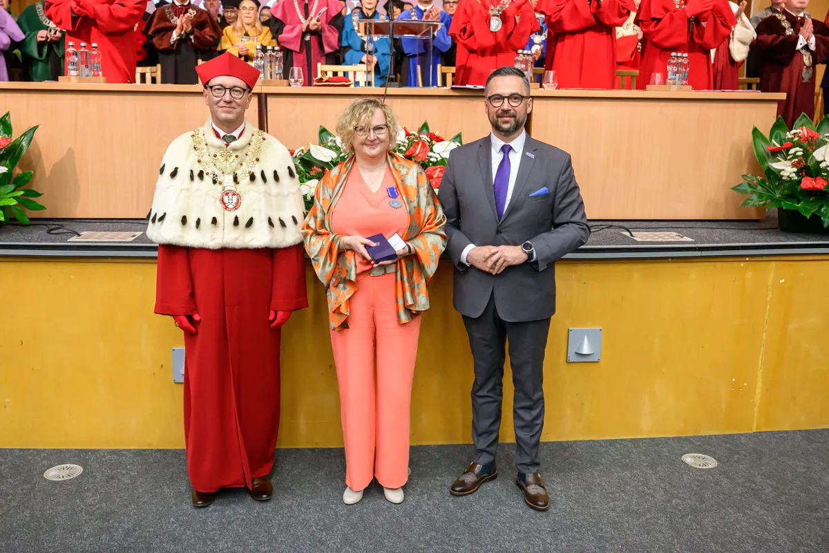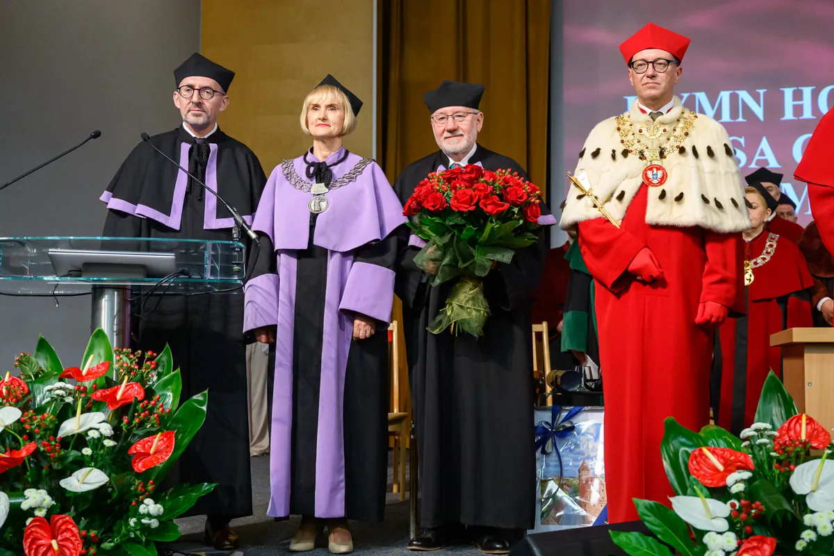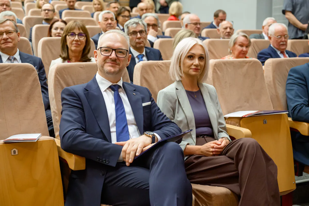 – Nasz Uniwersytet jest obecnie jedną z najważniejszych uczelni w Polsce. Łącząc tradycję z nowoczesnością, kształci tysiące studentów, zatrudnia wybitną kadrę naukową oraz dydaktyczną i rozwija się dynamicznie. Jestem niesamowicie dumna z naszej uczelni – zaznaczyła senator Ewa Kaliszuk. I dodała: – Zawsze z wielką uwagą przysłuchuję się wystąpieniom pana rektora, prof. Jerzego Przyborowskiego. Po wysłuchaniu dzisiejszego, odnoszę wrażenie, że szczególną uwagę pan rektor poświęcił kwestiom relacji, wspólnoty – temu, aby państwo czuli się zaopiekowani i bezpieczni. I ja za tę wrażliwość i troskę o dobrostan serdecznie dziękuję.