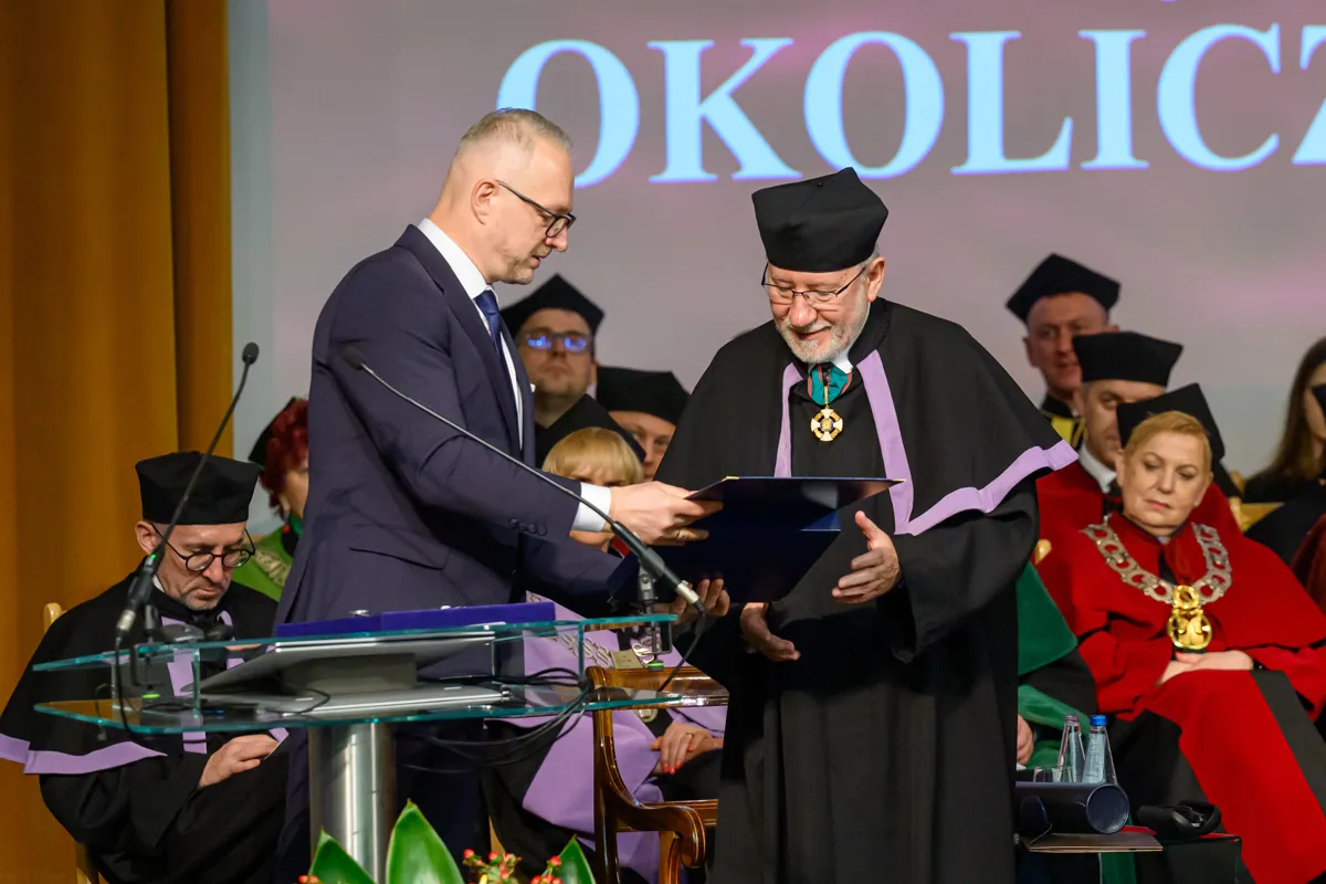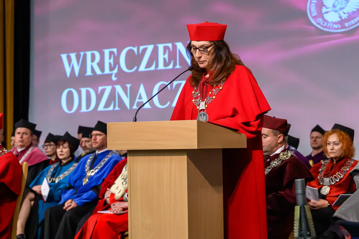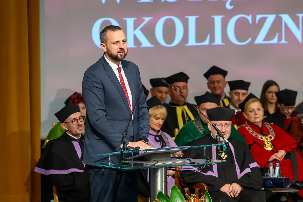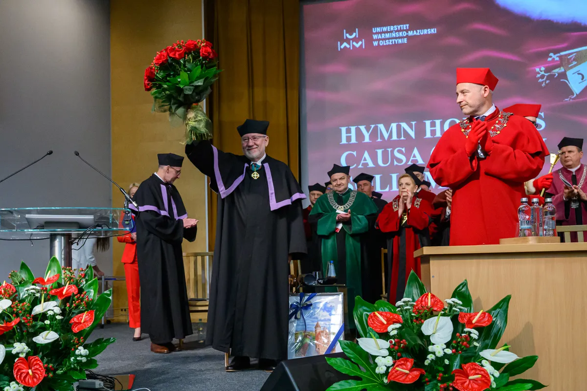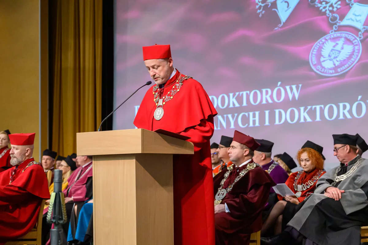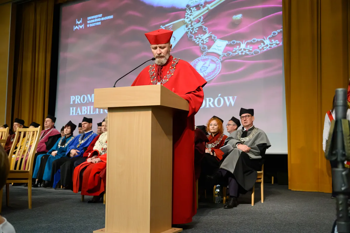 – Celebrujemy nie tylko historię i dorobek tej uczelni, ale także jej nieprzemijającą misję polegającą na kształceniu, badaniach i służbie społeczeństwu. Dziś jednak nie można przemilczeć tematu, który dotyczy nas wszystkich, a mianowicie kryzysu wartości, jaki obserwujemy w wielu wymiarach współczesnego świata – mówił z kolei Robert Szewczyk, prezydent Olsztyna. – Żyjemy w czasach ogromnych przemian – technologia rozwija się szybciej niż nasza zdolność do jej rozumienia. Informacja, choć powszechnie dostępna, często przybiera postać szumu, fałszu, manipulacji. Coraz częściej to, co natychmiastowe i skuteczne, wypiera to, co prawdziwe i sprawiedliwe. W takim świecie uniwersytet staje się nie tylko miejscem nauki, ale także ostoją prawdy, rzetelności, odpowiedzialności i wolności myśli. Jako prezydent Olsztyna, które ma osobiste związki z Uniwersytetem Warmińsko-Mazurskim, zapewniam państwa, że Olsztyn będzie wspierał i chronił tę misję, bo tylko społeczeństwo oparte na wartościach, może być naprawdę silne duchowo i moralnie. Niech to dzisiejsze święto będzie okazją do dumy z dorobku uczelni, ale także refleksji nad tym, co naprawdę cenimy, w co wierzymy i co jesteśmy w stanie dla tego poświęcić.