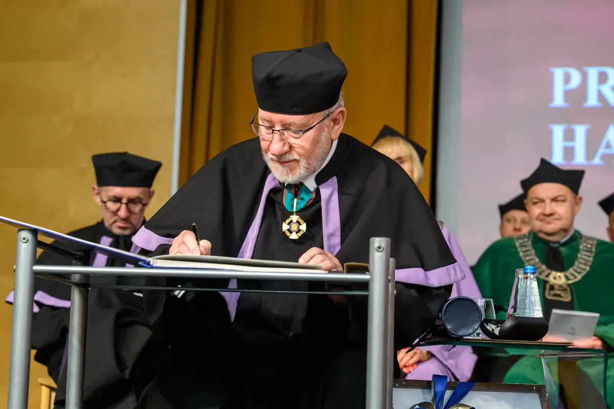 – Dzisiejsze wyróżnienie jest wyrazem naszej wdzięczności i uznania dla pana wkładu w rozwój Uniwersytetu Warmińsko-Mazurskiego, w rozwój Warmii i Mazur, polskiej nauki oraz prawa konstytucyjnego – zwrócił się do nowego doktora honoris causa rektor UWM.