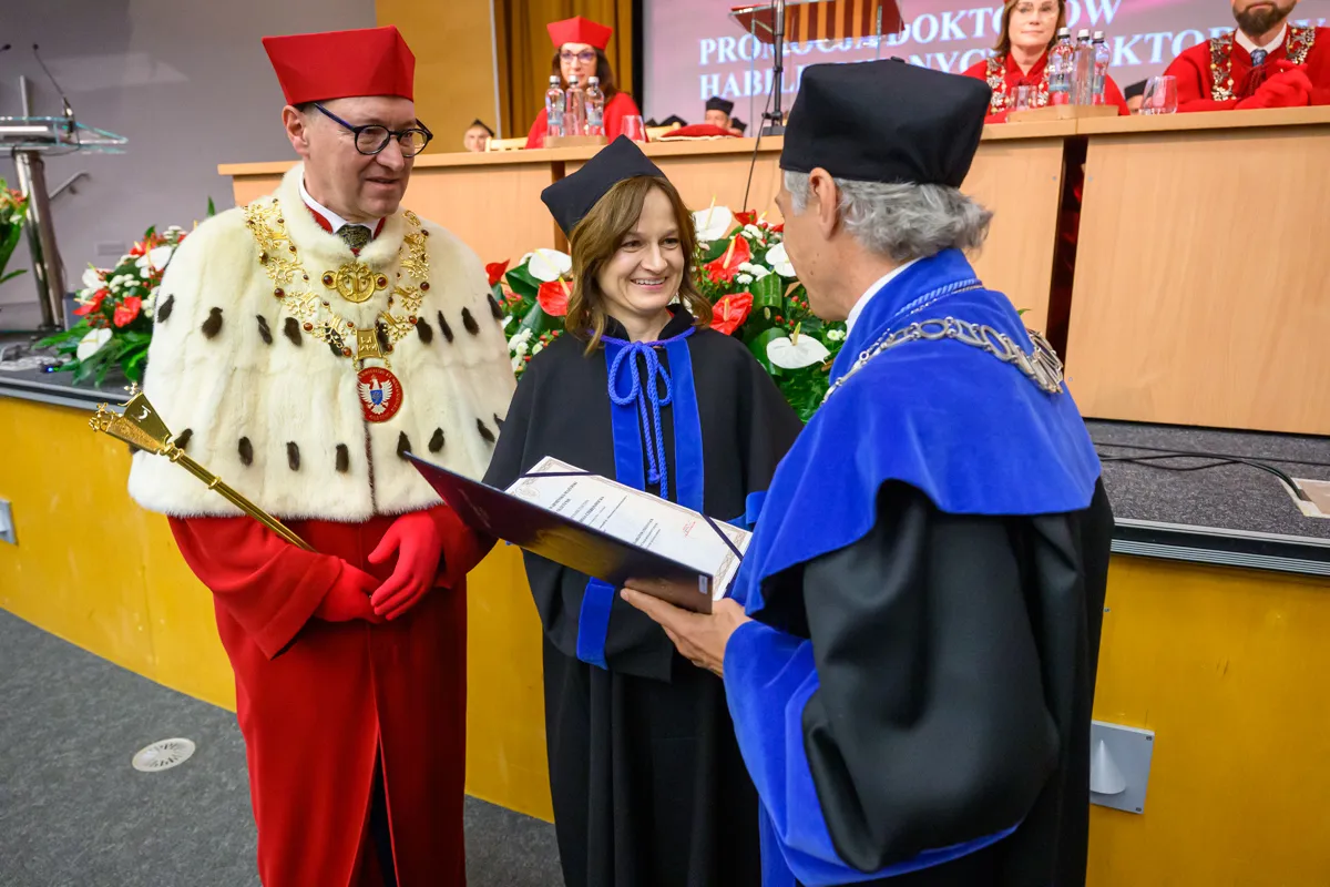 – Dzisiejsza uroczystość jest dla nas źródłem radości i satysfakcji. Stanowi podsumowanie ważnego etapu drogi zawodowej, którego istotą jest poszukiwanie prawdy. Pracy naukowca towarzyszy poczucie odpowiedzialności i samotności – nawet jeśli pracujemy w zespołach badawczych. Satysfakcja przychodzi niespiesznie i zwykle obwarowana jest poczuciem niedosytu, jednak to wyjątkowy przywilej móc odkrywać prawidłowości rządzące otaczającym nas światem – mówiła dr hab. Czerepowicka, językoznawczyni z Katedry Logopedii. – W tym procesie towarzyszą nam nasi mistrzowie, współpracownicy, mentorzy, recenzenci – to ich wskazówki i uwagi bywają inspiracją do formułowania nowych pytań i poszukiwania kolejnych odpowiedzi. A wszystko po to, by – zgodnie z tekstem przysięgi – rozwijać badania naukowe nie z żądzy zysku i dla próżnej chwały, ale po to, by odkrywać i upowszechniać prawdę – największy skarb ludzkości.