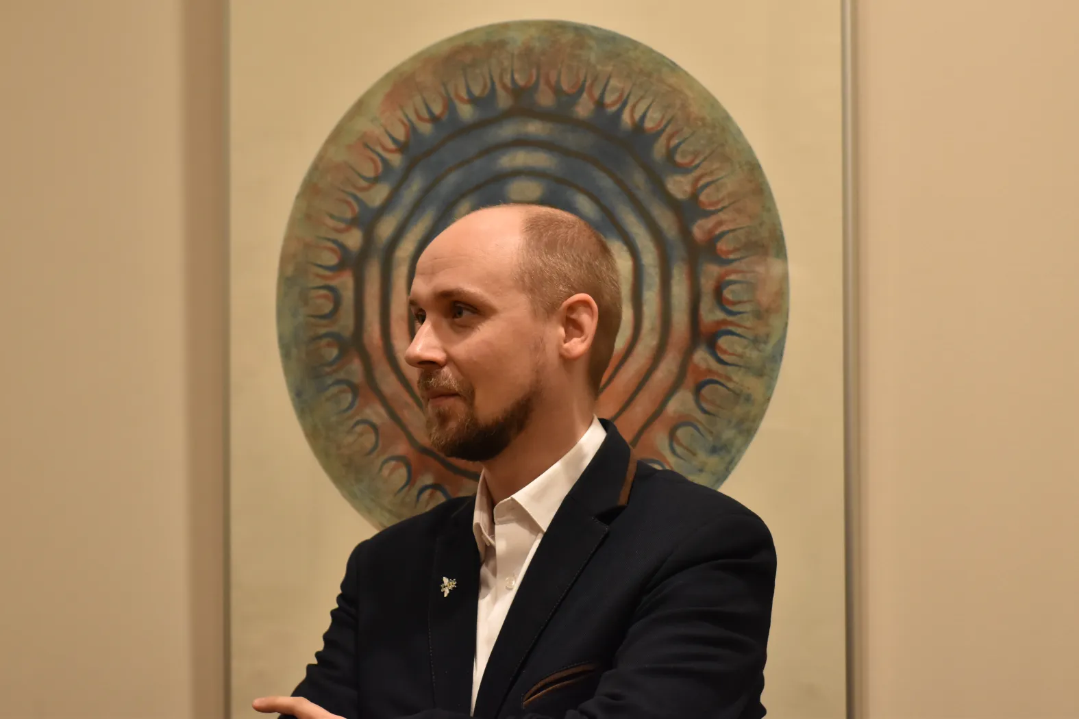 – Istnieje dość popularny eksperyment fizyczny: na metalowej płytce umieszcza się sypki materiał (np. sól, piach) i to pobudza płytkę do drgań w konkretnej częstotliwości, która, pracując, powoduje powstanie fali stojącej i przez to pojawiają się rozmaite unikatowe wzory. Jako grafik wpadłem na pomysł, aby zamiast piasku czy soli użyć sproszkowanej kalafonii. Dzięki temu warsztatowi graficznemu, mogłem obraz z tej płytki zapisać w postaci wizualnej na matrycy graficznej (technika zwana akwatintą). Dzięki temu mam zapisany obraz danej częstotliwości, którą wcześniej wzbudzałem emiterem do tej płytki, i mogę pokazywać kształty w różnych kolorach, które charakteryzują się uporządkowaną strukturą oraz symetryzmem. Im czystszy dźwięk, tym wzór jest bardziej złożony; im wyższy, tym bardziej skomplikowany; im niższy, tym prostszy. A zatem dzięki moim grafikom możemy zobaczyć coś pozornie niemożliwego do zobaczenia – wyjaśnia dr Marcin Piotrowicz w rozmowie z „Wiadomościami Uniwersyteckimi".