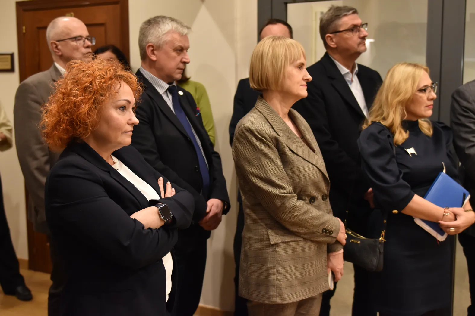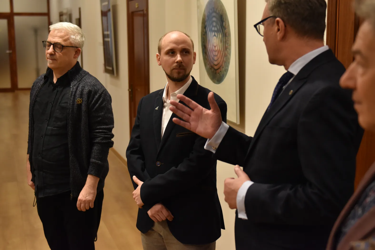 W wernisażu wystawy dr. Marcina Piotrowicza wzięli udział: prof. Jerzy Przyborowski, rektor UWM, prorektorzy, dziekani wydziałów oraz pracownicy rektoratu.