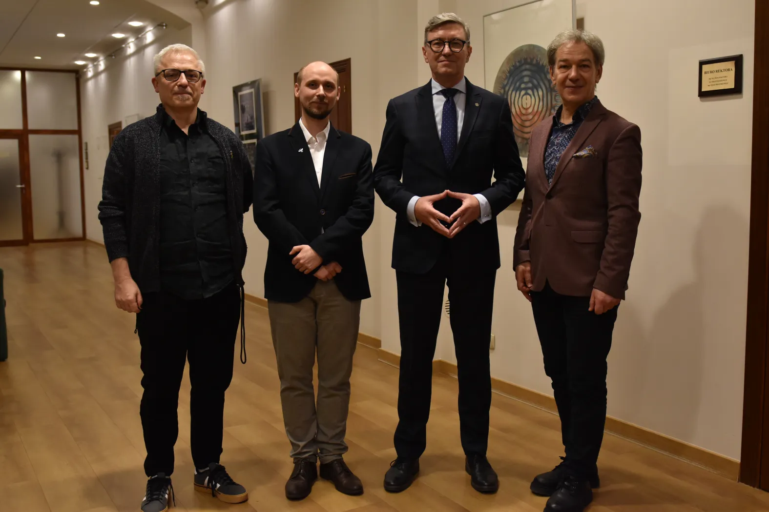 – Rektorat jest miejscem, w którym spotykają się eksperci z różnych dziedzin. To wspaniale łączy się z moimi pracami, które pokazują, że sztuka może przenikać do innych dziedzin nauki, że jest interferencyjna. Zajmuję się zjawiskami fizycznymi, na pograniczu muzyki i dźwięku, ale tą wystawą chciałbym również dać do zrozumienia, że każdy rodzaj pracy naukowej jest potrzebny i może stanowić inspirację – przekonuje dr Marcin Piotrowicz.