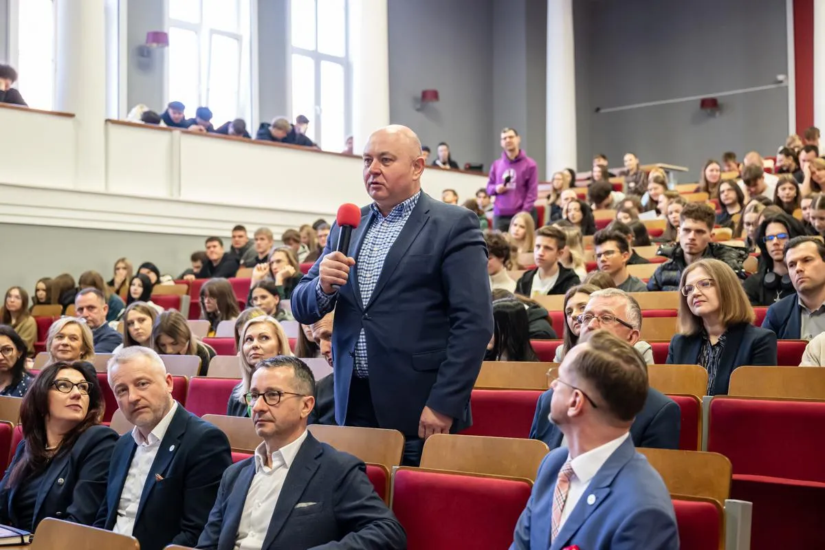 – To już dziesiąty Dzień z Ekonomią. Przypomnijmy, że poza ekonomią na wydziale mamy też nauki o zarządzaniu. Można u nas studiować zarządzanie, logistykę, zarządzanie i inżynierię produkcji. Z dzisiejszym wykładem prof. Sebastiana Skuzy z UW wiąże się też to, że w roku akademickim 2027-2028 rozpoczynamy studia w zakresie finansów i rachunkowości. Nasz wydział jest największy na Uniwersytecie. Mamy 2 tys. studentów, dziewięć funkcjonujących kierunków studiów podyplomowych – mówił dziekan wydziału prof. Krukowski. – Dzisiejszy dzień jest także spotkaniem z firmami, organizacjami, przedstawicielami samorządu studenckiego.