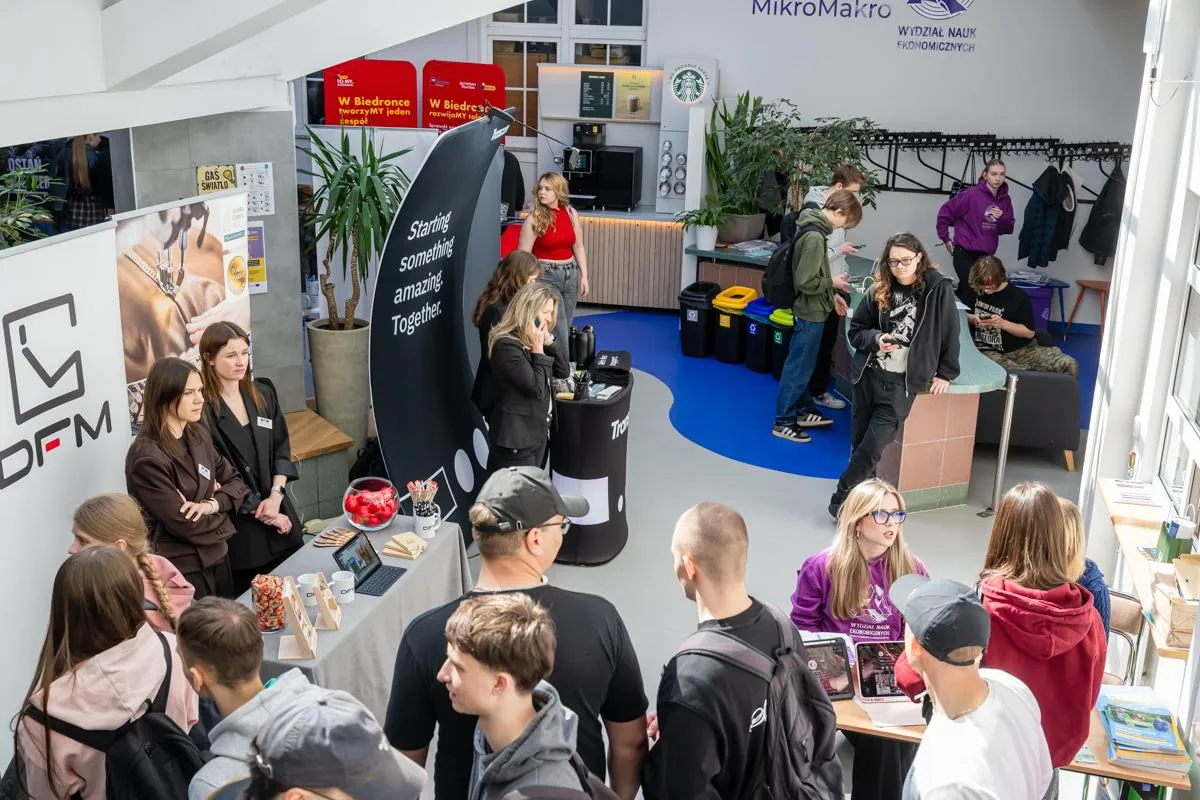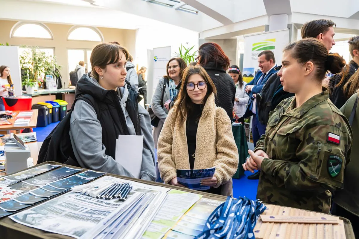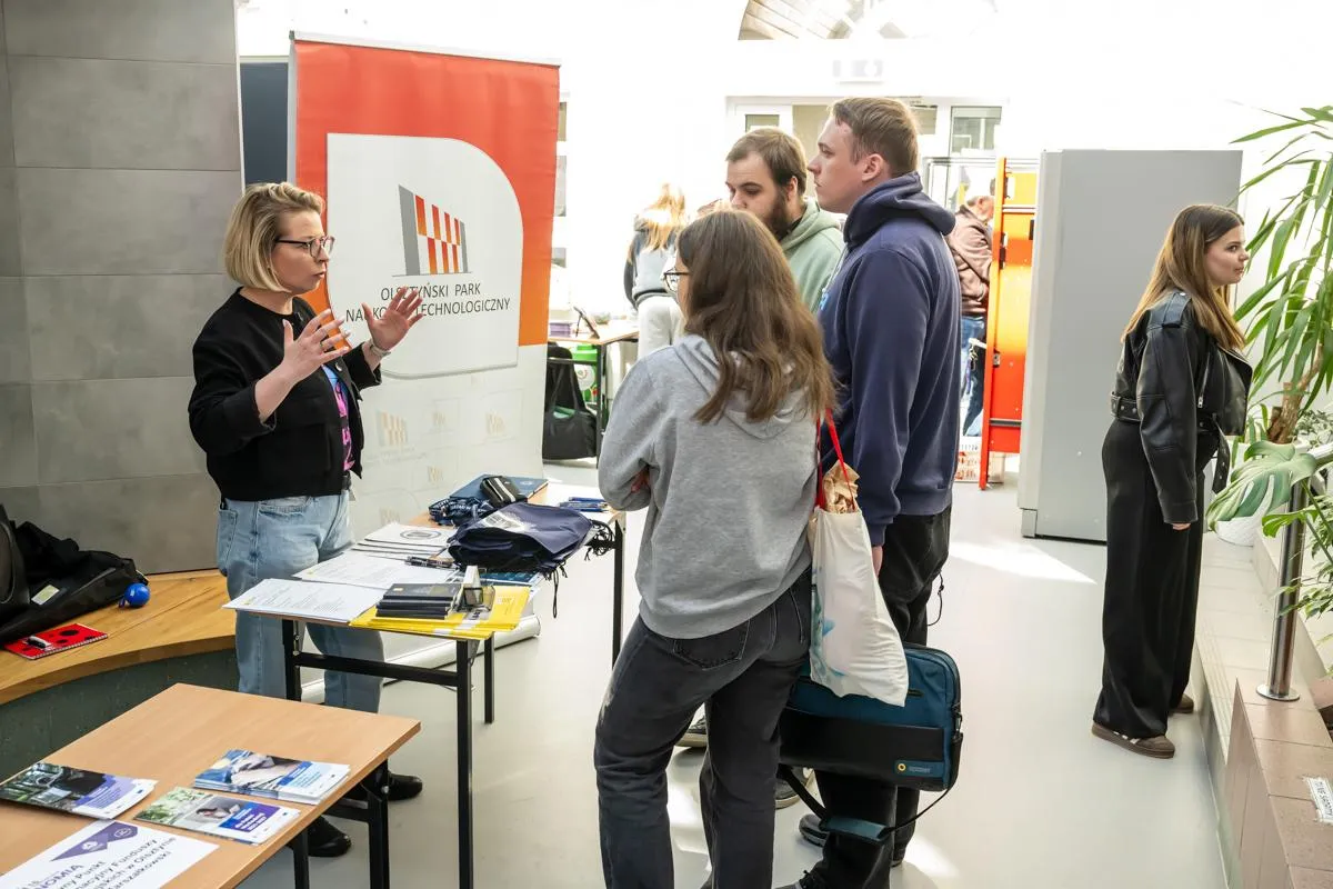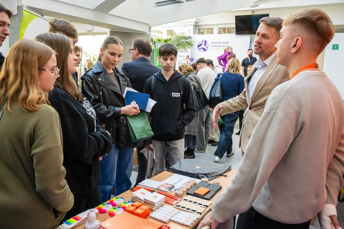 – Przede wszystkim mówimy o tym, z czego studenci mogą korzystać: indywidualne konsultacje u nas w biurze, wsparcie techniczne w zakresie pisania CV, listów motywacyjnych i planowania ścieżki kariery. Staramy się przybliżyć studentom i studentkom, jak dzisiaj wygląda rynek pracy. Promujemy Targi Pracy, które odbędą się na UWM 14 maja, na które zaprosiliśmy ponad 60 wystawców, pracodawców, którzy przyjadą z gotowymi ofertami staży, praktyk i pracy – opowiadała Paulina Babuchowska, doradczyni zawodowa. Dodała, że rozmawiają także z przebywającymi dzisiaj na WNE uczniami szkół średnich, którzy może w przyszłości będą studiować na UWM. – Mówimy o naszych usługach jako Biuro Karier, ale też przybliżamy im trochę rynek pracy i naszą misję. Myślę, że ważne jest to, by licealiści wiedzieli, jak wygląda tranzycja ze szkoły średniej do studiowania w kontekście przyszłego zawodu i jak Uniwersytet może ich w tym wspierać.