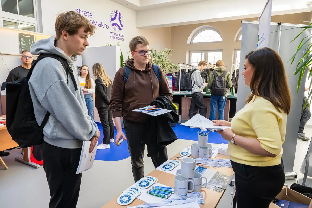 Wydział Nauk Ekonomicznych zaprosił także partnerów z wydziałowej Rady Patronackiej. Można było porozmawiać o możliwościach zawodowych po studiach nie tylko na WNE, pracy, stażu, ale także o tym, co warto wziąć pod uwagę, planując swoją przyszłość zawodową. Przedstawiciele firm odpowiadali na pytania zarówno studentów, jak i uczniów szkół średnich. O swojej działalności mówili także studenci kół naukowych.