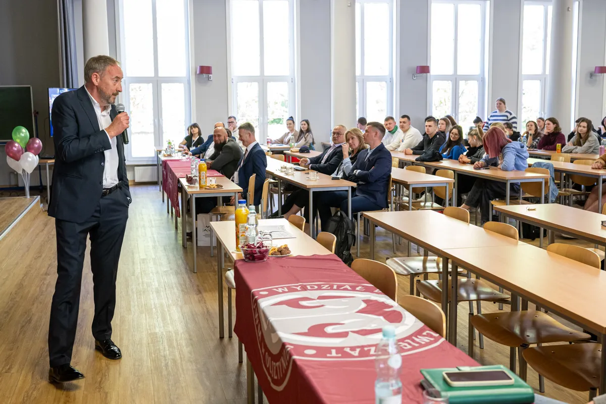 – Bardzo dziękuję, że wracacie do nas, aby podzielić się z młodszymi kolegami swoją wiedzą, upewnić ich, że dokonali słusznego wyboru i dodać pewności siebie. Życzę owocnych obrad. Prelegentom podróżny w przeszłość i przypomnienia sobie czasów studenckich, a studentom odwagi do zadawania pytań. Im więcej odpowiedzi uzyskacie, tym będzie wam łatwiej – zaznaczyła dziekan.