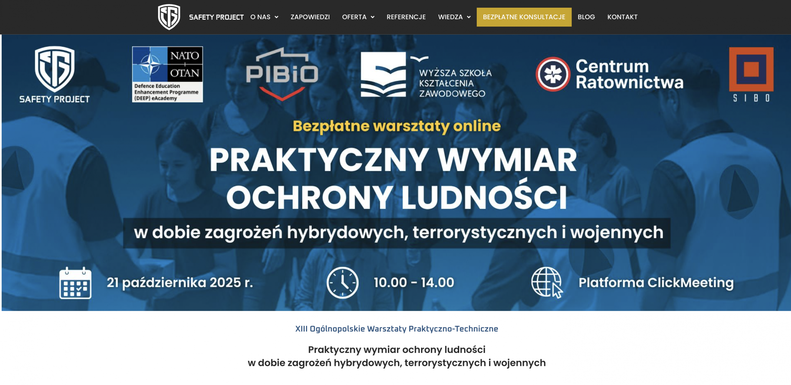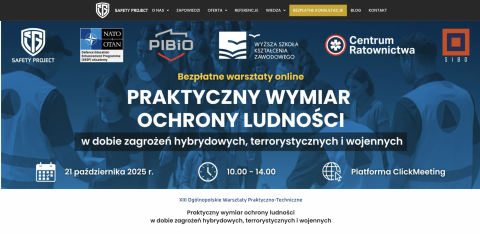 21 października 2025 roku, na platformie wideokonferencyjnej ClickMeeting, zostały przeprowadzone certyfikowane, XIII Ogólnopolskie Warsztaty Praktyczno-Techniczne na temat "Praktyczny wymiar ochrony ludności w dobie zagrożeń hybrydowych, terrorystycznych i wojennych".