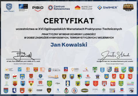 17 marca 2026 roku odbyły się XVI. Ogólnopolskie Warsztaty Praktyczno-Techniczne na temat. „Praktyczny wymiar ochrony ludności w dobie zagrożeń hybrydowych, terrorystycznych i wojennych”. Wydarzenie, w którym uczestniczyło ponad dwa tysiące osób (w tym studenci naszej filii), zostało przeprowadzone w formule online. Podczas warsztatów omówione zostały kluczowe zagadnienia związane z praktycznym przygotowaniem społeczeństwa na sytuacje kryzysowe. Otwierając warsztaty, dr hab. Piotr Gawliczek, prof. UWM, dyrektor NATO DEEP eAcademy stwierdził m.in., że: "Po raz kolejny mam zaszczyt otwierać to cykliczne szesnaste już przedsięwzięcie, stąd - chciałbym, niejako już zwyczajowo, podkreślić, że zachęcam Państwa do ZAMIANY lęków, niepokojów - na ŚWIADOMOŚĆ (!). A świadomość budujemy przez WIEDZĘ, mieszczącą się w jakże złożonym kontekście działań kognitywnych (Cognitive Warfare), którym jesteśmy poddawani nieustannie. I to wszyscy bez wyjątku — czy mamy tego świadomość, czy też nie. Jedno nie podlega wątpliwości – w świecie rosnących zagrożeń – od konfliktów zbrojnych i działań hybrydowych z wykorzystaniem technologii sztucznej inteligencji, poprzez klęski żywiołowe, do kryzysów infrastrukturalnych – odporność państwa zaczyna się od wymiaru personalnego, od perspektywy pojedynczego człowieka i jego rodziny. Zatem — co zrobić, by zadbać o poczucie bezpieczeństwa owego „pojedynczego człowieka”, które absolutnie determinuje naszą codzienną aktywność zawodową, a nawet wypoczynek? Ekstremalne, ryzykowne, chaotyczne ruchy chcemy osadzić w prawdopodobieństwie sukcesu bądź porażki. Chcemy znać te proporcje! Wtedy zdolni jesteśmy podjąć ryzyko. Chcemy WIEDZIEĆ, co nam grozi! Dzisiejsze warsztaty są przestrzenią refleksji. Refleksji eksperckiej, praktycznej i nastawionej na konkretne rozwiązania. Niech wybrzmi fraza, którą zaczerpnąłem podczas jednych z poprzednich warsztatów: uczyć społeczeństwo samodzielnego oraz krytycznego myślenia! Zatem — zdobywajmy wiedzę, wypracowujmy nawyki obronne. To będzie swoisty początek poczucia bezpieczeństwa".