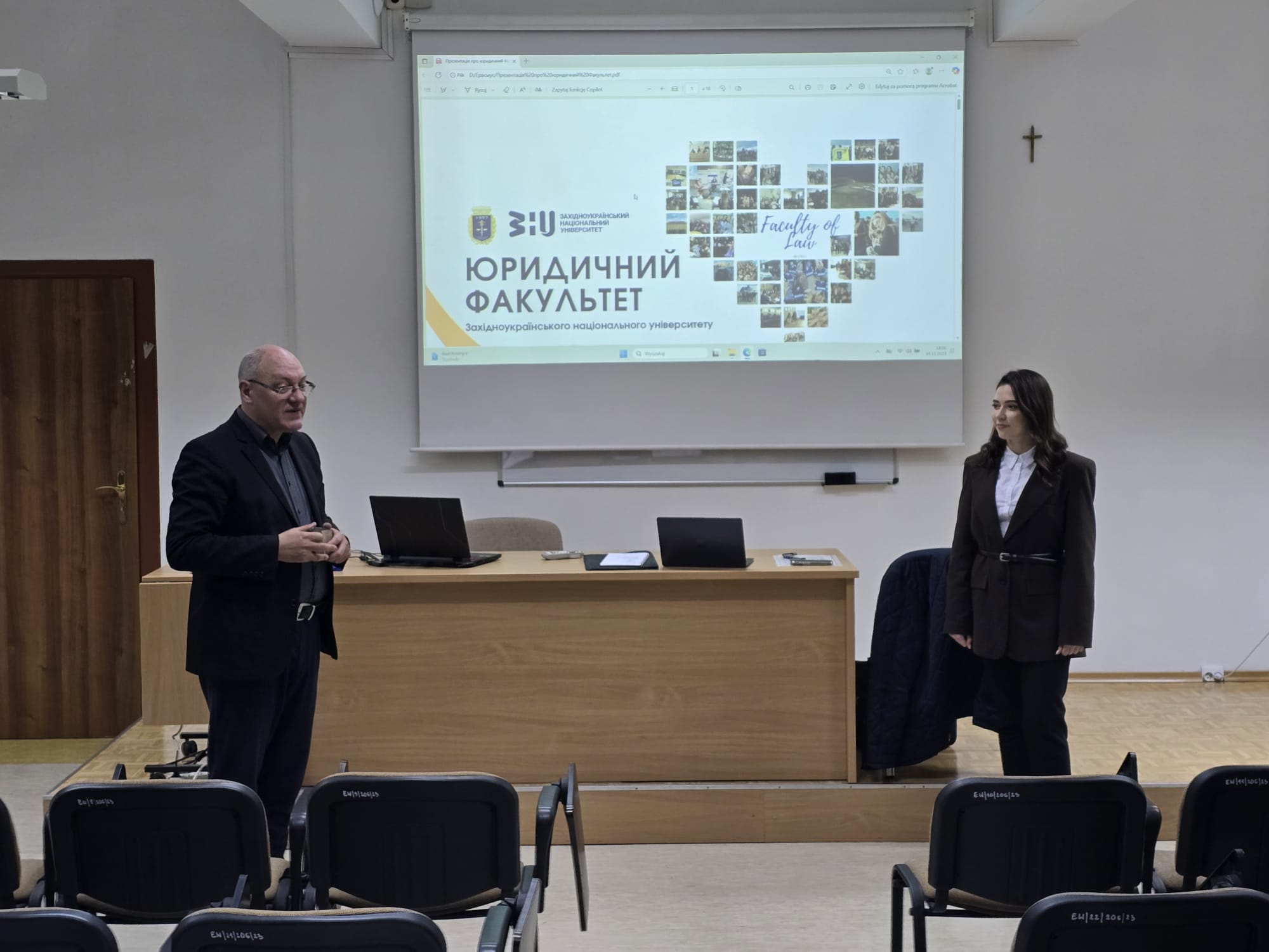 Wizyta odbyła się w ramach programu Erasmus+ z krajami partnerskimi. Pani docent uczestniczyła w zajęciach prowadzonych na kierunku administracja – zarówno na studiach licencjackich, jak i magisterskich. Wygłosiła również wykład dotyczący sytuacji prawnej na Ukrainie w czasie trwania działań wojennych oraz zaprezentowała działalność Wydziału Prawa Zachodnioukraińskiego Narodowego Uniwersytetu w Tarnopolu.
