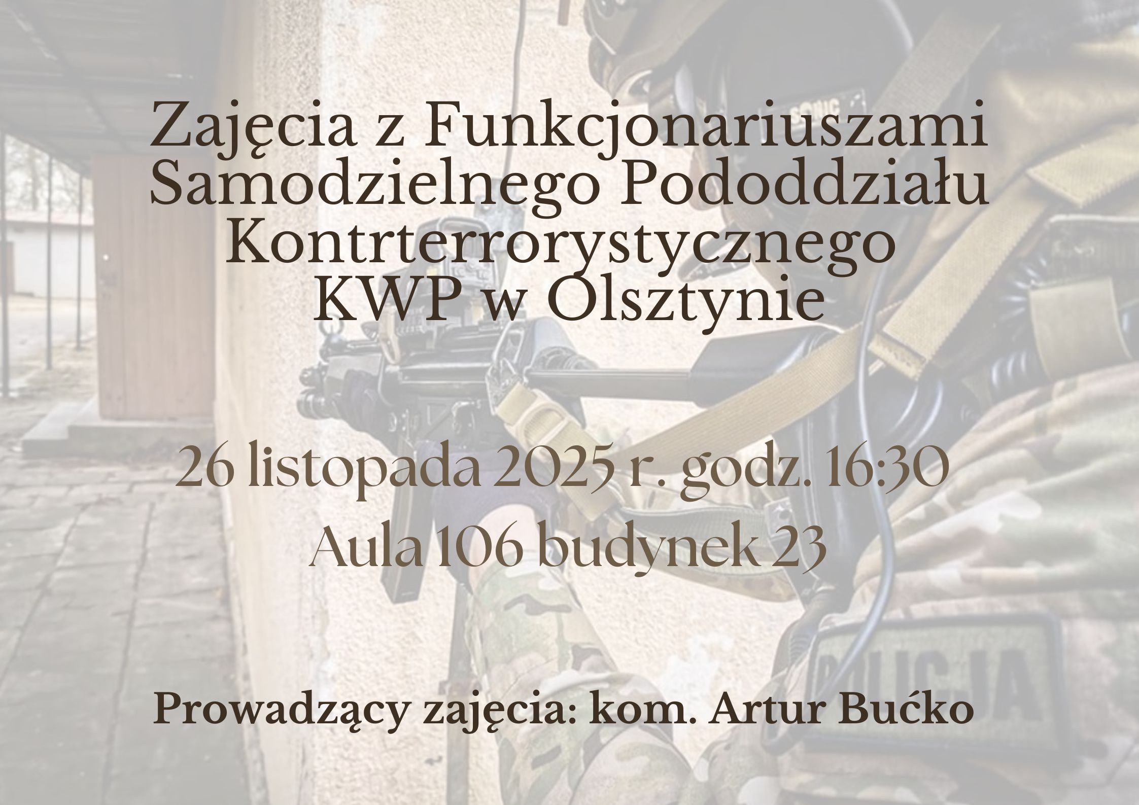 Zajęcia prowadzone będą przez kom. Artura Bućko (wykładowca Filii UWM w Ełku) oraz dwóch funkcjonariuszy Samodzielnego Pododdziału kontrterrorystycznego Policji KWP w Olsztynie.