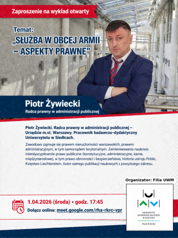 Zaproszenie na wykład otwarty pt. „Służba w obcej armii – aspekty prawne”.