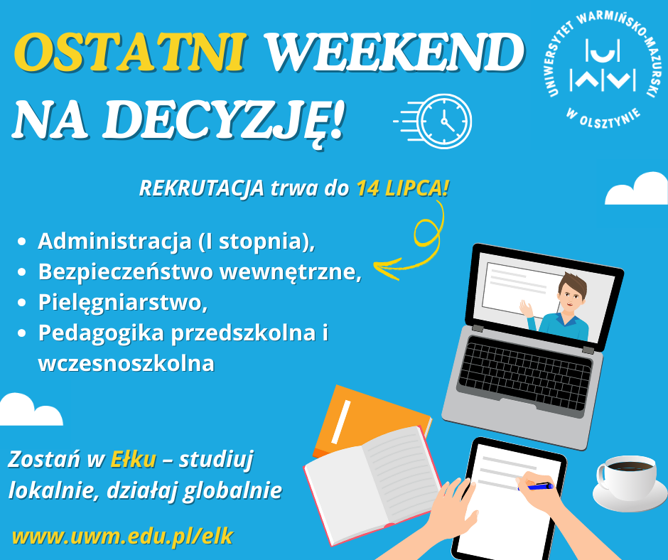 Nie odkładaj decyzji na ostatnią chwilę – to już ostatni weekend, by zapisać się na studia i dołączyć do grona studentów UWM w Ełku!