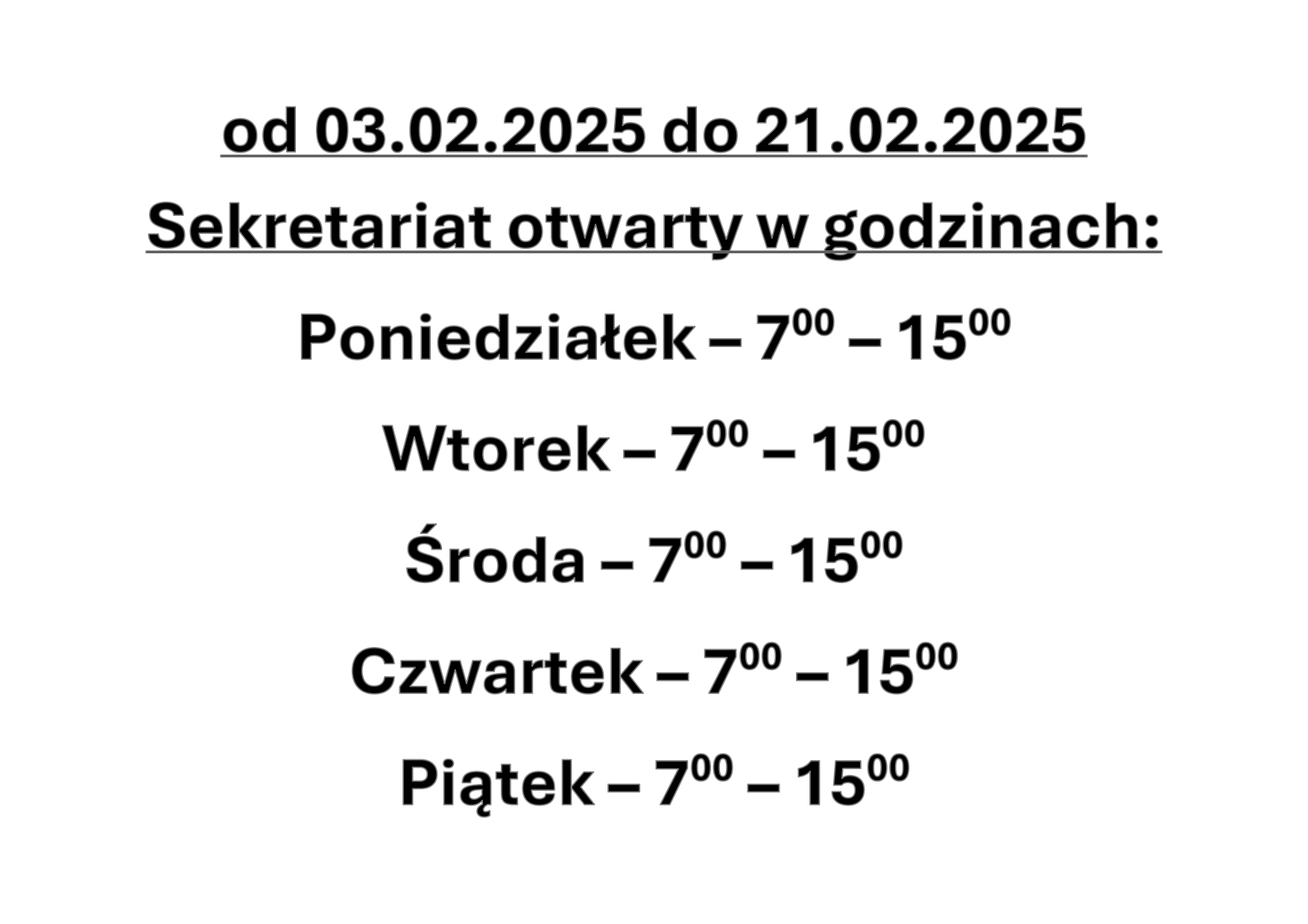 ZMIANA GODZIN PRACY SKRETARIATU