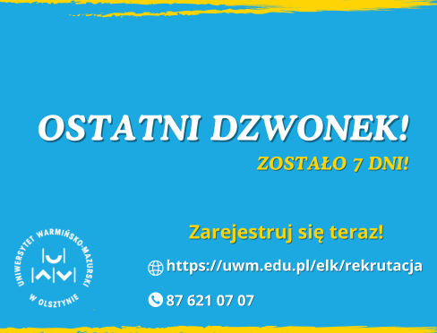 09/09/2025Do końca II tury rekrutacji w Filii UWM w Ełku zostało już tylko 7 dni. To ostatni moment, aby podjąć decyzję i dołączyć do grona studentów Uniwersytetu od nowego roku akademickiego.