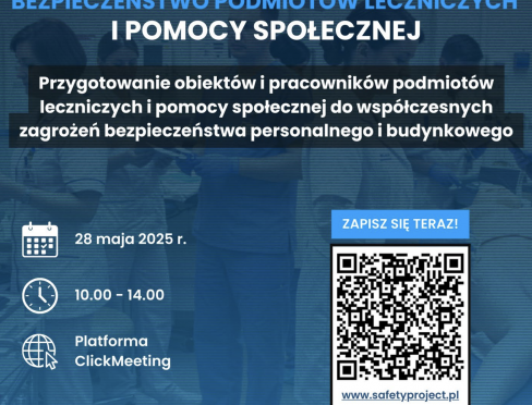 26/05/202528 maja 2025 r., w godz. 10.00-14.00, na platformie wideokonferencyjnej ClickMeeting, zostaną przeprowadzone warsztaty na temat: "Bezpieczeństwo podmiotów leczniczych i pomocy społecznej.