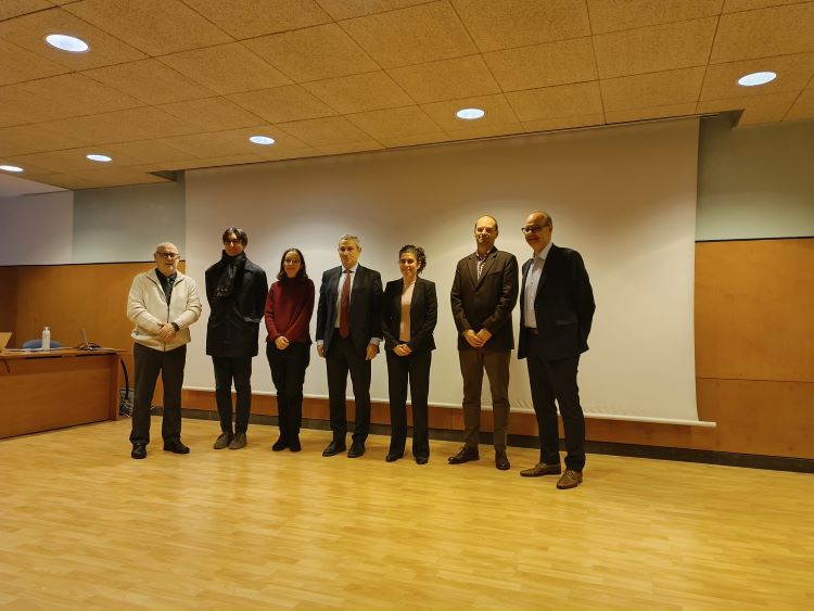 Na zdjęciu (od lewej): Vicente Gibert (profesor senior), członkowie jury: Ricardo José Gómez Val, Laura Calvet Liñán, Juan Ramón Casas Rius, doktorantka Veronica Royano Garcia oraz promotorzy: Jacek Rapiński i Carles Serrat.