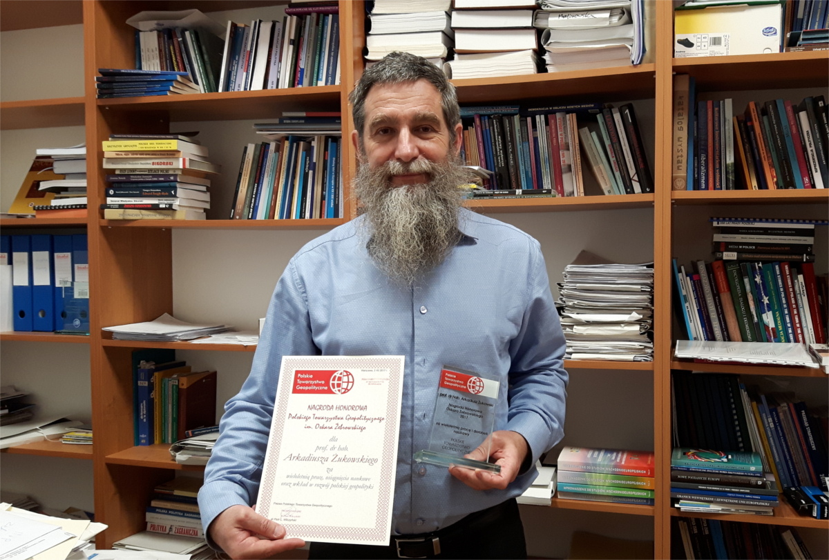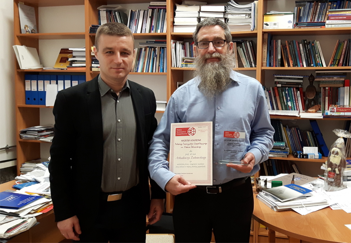Nagrodę w imieniu prof. A. Żukowskiego odebrał dr Krzysztof Żęgota, z Instytutu Nauk Politycznych UWM, szef Oddziału PTG w Olsztynie.