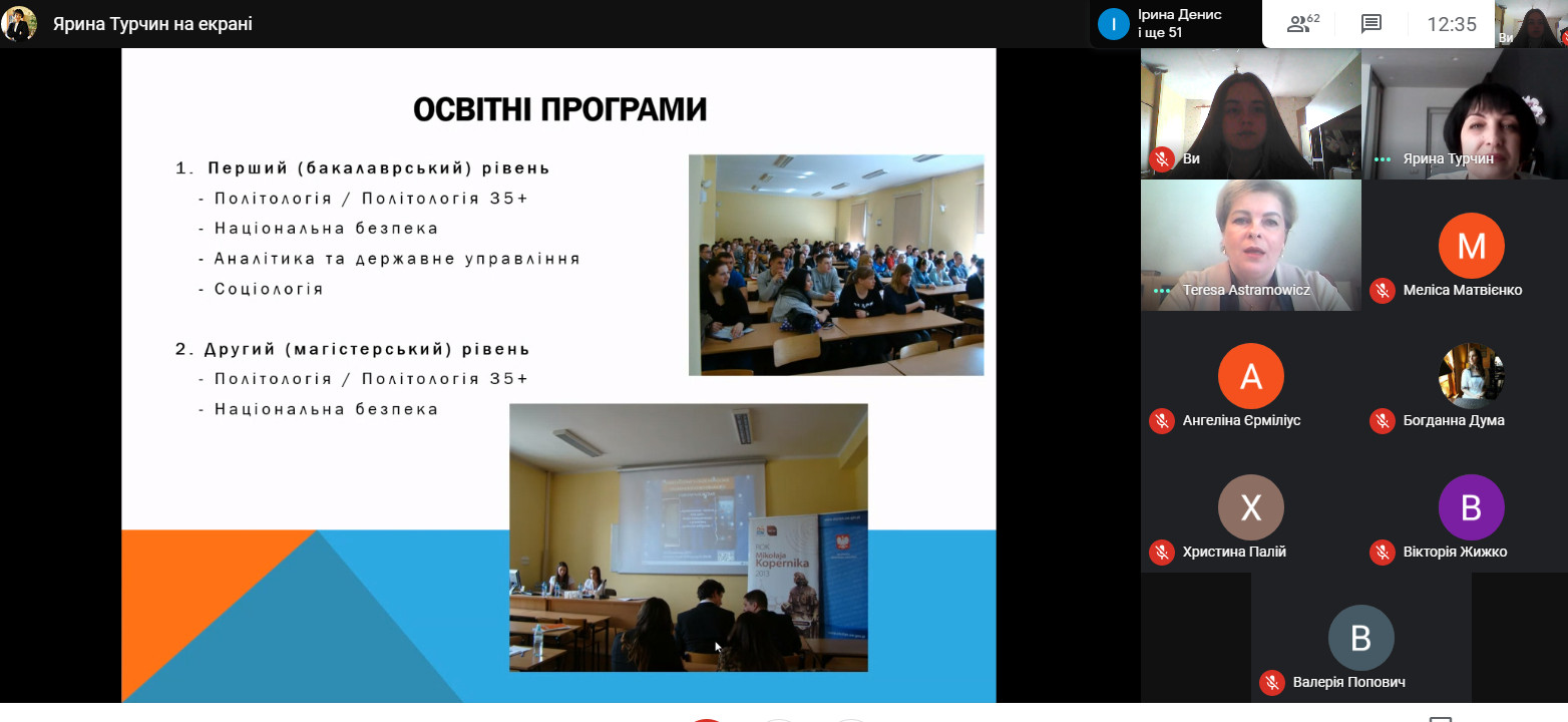 W dniu 1 kwietnia 2021 r. koordynatorka współpracy WNS UWM z Uniwersytetem Narodowym Lwowska Politechnika dr hab. Teresa Astramowicz-Leyk, prof. UWM przy współpracy z koordynatorką współpracy UNLP z UWM prof. dr hab. Jariną Turchyn zorganizowały dwa spotkania informacyjne on-line o możliwości studiowania w ramach programu podwójnych dyplomów.