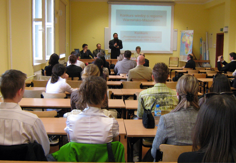 Tego samego dnia w INP przeprowadzono konkurs Wiedzy o Regionie Warmińsko-Mazurskim, który odbywa się pod patronatem Marszałka Województwa Jacka Protasa. Uczniowie mieli za zadanie rozwiązanie testu sprawdzającego ich wiadomości z zakresu historii regionu, aktualnych spraw politycznych i samorządowych, a nawet z geografii naszego województwa. Uczniowie musieli się zatem wykazać wszechstronną wiedzą. Pierwsze miejsce w tym konkursie zajął Błażej Żyliński z IV LO w Olsztynie (opiekun mgr H. Falkowski), drugie Radosław Rosiński z VII LO w Olsztynie (opiekun mgr A. Matusewicz), a trzecie Aneta Kuc z LO w Pasłęku (opiekun T. Rozenbajgier).