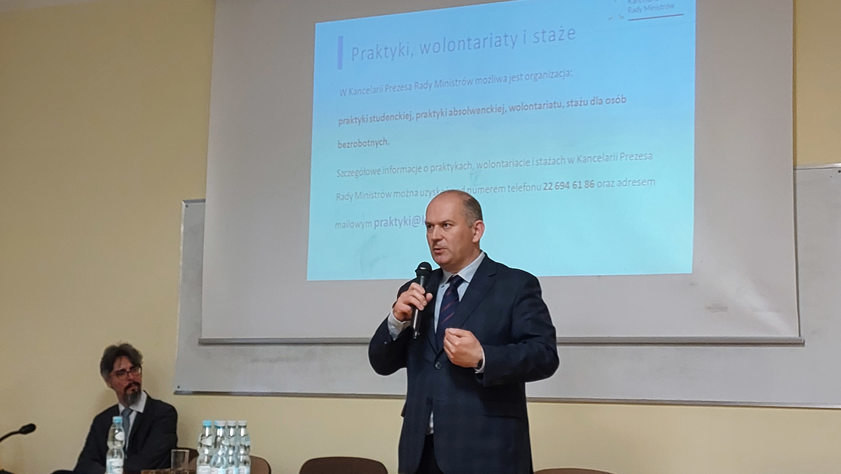 Przedstawiciele RCA przybliżyli studentom i studentkom zakres kompetencji tej instytucji oraz jej znaczenie w procesie legislacyjnym. Spotkanie odbyło się z inicjatywy Szefa RCA prof. Norberta Maliszewskiego i miało charakter warsztatów skierowanych do słuchaczy kierunków: analityka i zarządzanie publiczne, politologia, bezpieczeństwo narodowe i socjologia.