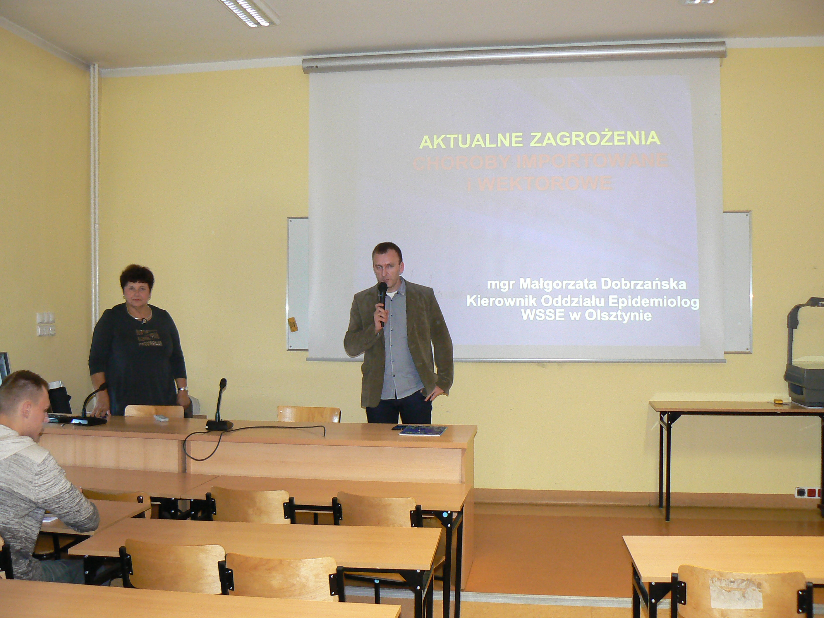W dniu 5 listopada 2014 roku na zaproszenie Koła Naukowego Bezpieczeństwa Narodowego w Instytucie Nauk Politycznych UWM gościła mgr inż. Małgorzata Dobrzańska, Kierownik Oddziału Epidemiologii Wojewódzkiej Stacji Sanitarno-Epidemiologicznej w Olsztynie, która wygłosiła wykład pt. „Choroby importowane i wektorowe”. Prelegentka przedstawiła zagrożenia naszego województwa w kontekście chorób zakaźnych, które nie istnieją na naszym terenie, ale mogą zostać przywleczone zza granicy jako wynik ataku bioterrorystycznego, albo jako efekt naturalnych migracji ludności.