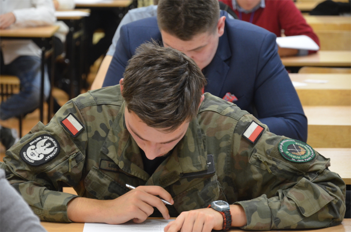 Uczestnicy po napisaniu testu wysłuchali interesujących prelekcji przygotowanych przez przedstawicieli Wojewódzkiego Sztabu Wojskowego w Olsztynie, 4 Warmińsko-Mazurskiej Brygady Obrony Terytorialnej oraz Komendy Wojewódzkiej Policji w Olsztynie. Dzięki współpracy z 9. Warmińskim Pułkiem Rozpoznawczym w Lidzbarku Warmińskim młodzież mogła zapoznać się z nowoczesnym sprzętem wojskowym. Stoisko przygotowane przez żołnierzy cieszyło się bardzo dużym zainteresowaniem.