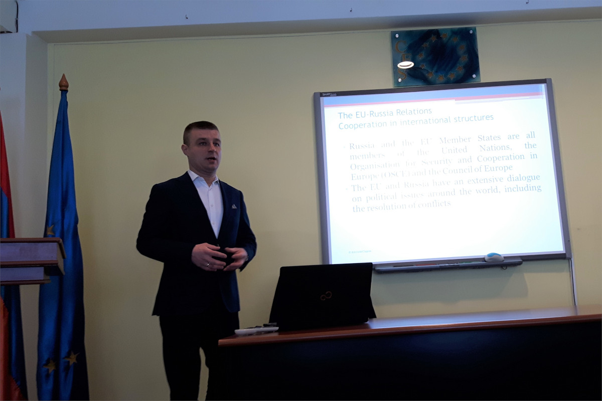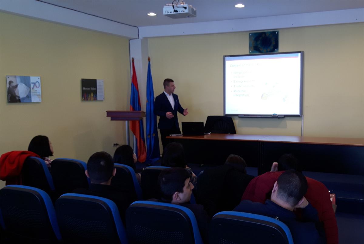 Dr K. Żęgota prowadził wykłady na temat relacji Unia Europejska - Rosja, obwodu kaliningradzkiego Federacji Rosyjskiej oraz polskiej polityki zagranicznej. Podjęto również rozmowy z przedstawicielami Uniwersytetu w Erywaniu na temat możliwości wspólnego aplikowania o zewnętrzne środki finansowania badań naukowych.