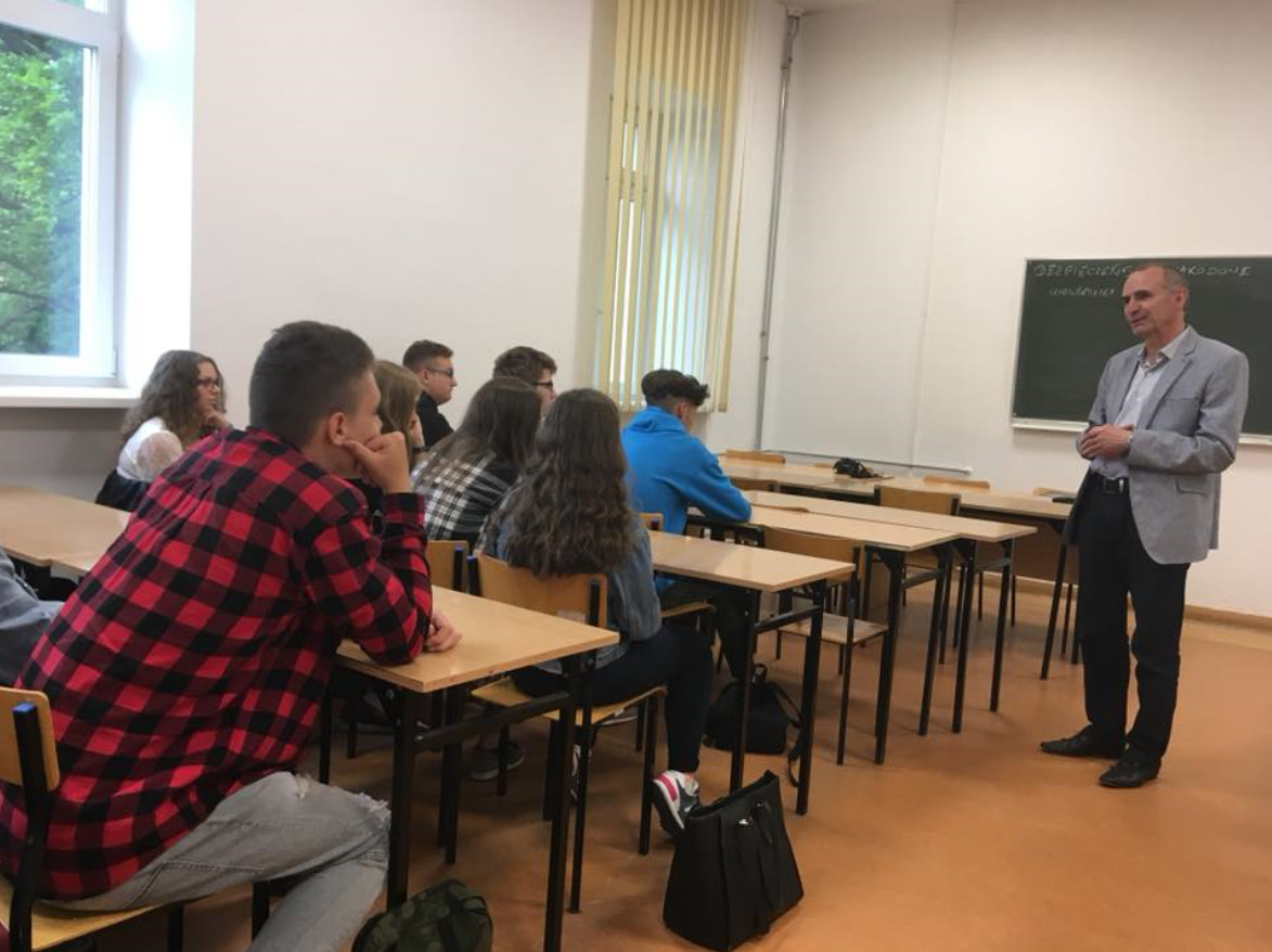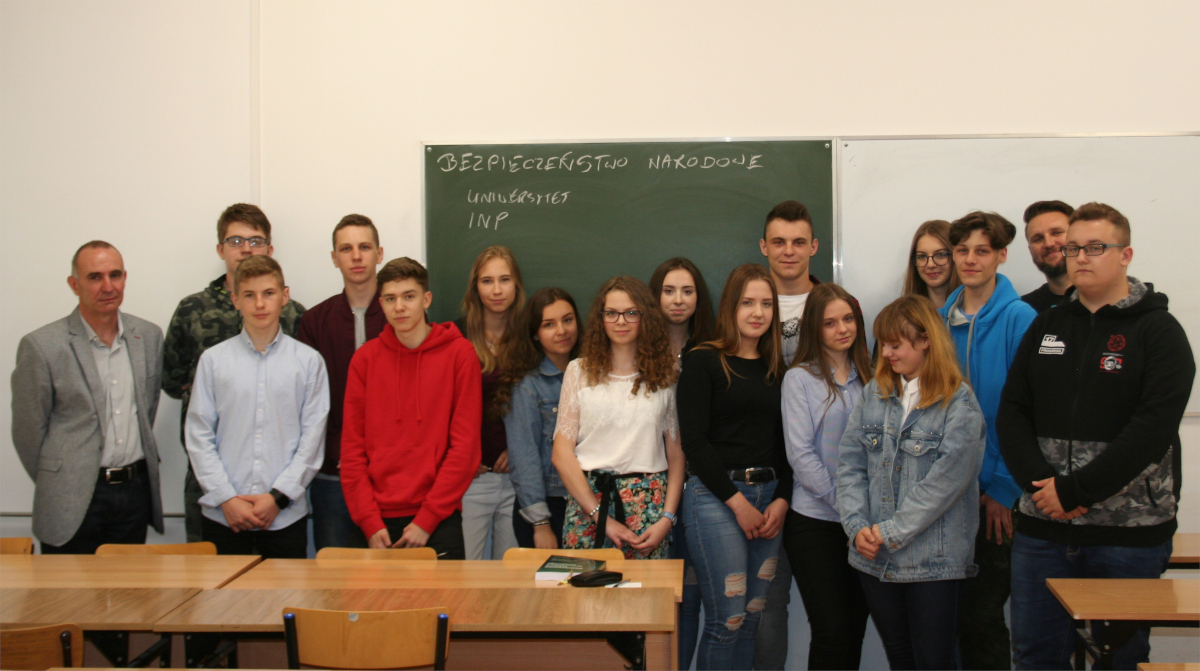 Uczniowie wzięli udział w warsztatach na temat bezpieczeństwa narodowego, które poprowadził dr hab. Janusz Filipkowski, a także zwiedzili Bibliotekę Uniwersytecką.