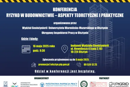 Jak przeciwdziałać niebezpiecznym sytuacjom na budowach? Wydział Geoinżynierii UWM i Państwowa Inspekcja Pracy Okręgowy Inspektorat Pracy w Olsztynie zapraszają 16 maja na konferencję o ryzyku w…