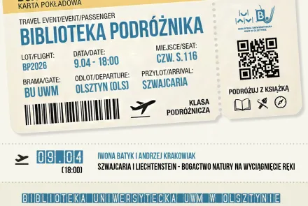 Biblioteka Uniwersytecka UWM zaprasza na kolejne spotkanie z cyklu „Biblioteka podróżnika". Tym razem Iwona Batyk i Andrzej Krakowiak zabiorą wszystkich do Szwajcarii i Lichtensteinu.