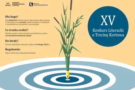 Katedra Literatury Polskiej UWM zaprasza do udziału w XV edycji Konkursu Literackiego o Trzcinę Kortowa, skierowanego do młodych poetów – studentów oraz uczniów szkół ponadpodstawowych.