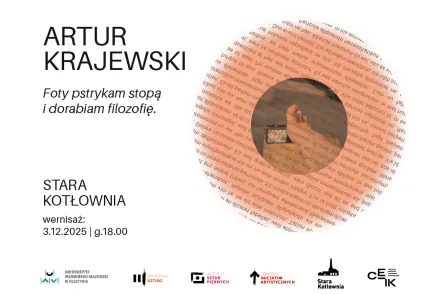 Ośrodek Inicjatyw Artystycznych Wydziału Sztuki oraz Centrum Ekspozycyjne Stara Kotłownia zapraszają na wernisaż wystawy prac prof. Artura Krajewskiego pt. „Foty pstrykam stopą i dorabiam filozofię”.