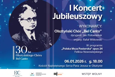 Wydział Sztuki UWM w imieniu Olsztyńskiego Chóru "Bel Canto" zaprasza na pierwszy z koncertów w ramach obchodów 30-lecia istnienia zespołu.