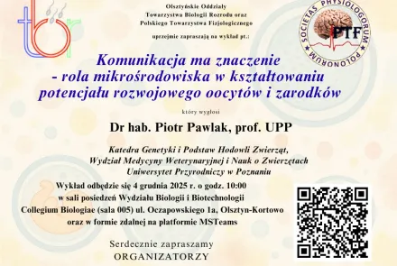 Wykład otwarty: Komunikacja ma znaczenie - rola mikrośrodowiska w kształtowaniu potencjału rozwojowego oocytów i zarodków