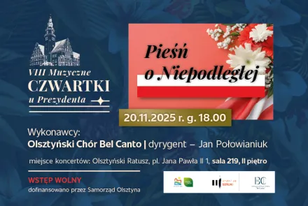 Olsztyński Chór Bel Canto zaprasza na koncert w ramach ósmej edycji cyklu „Muzyczne Czwartki u Prezydenta”.