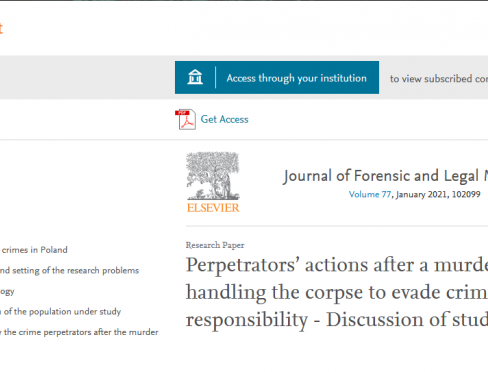 02/01/2021Zachęcamy do zapoznania się z artykułem Pana dra Andrzeja Gawlińskiego: Perpetrators’ actions after a murder, in particular handling the corpse to evade criminal responsibility - Discussion of study findings, który ukazał się w Journal of Forensic and Legal Medicine (Volume 77, January 2021, 1020