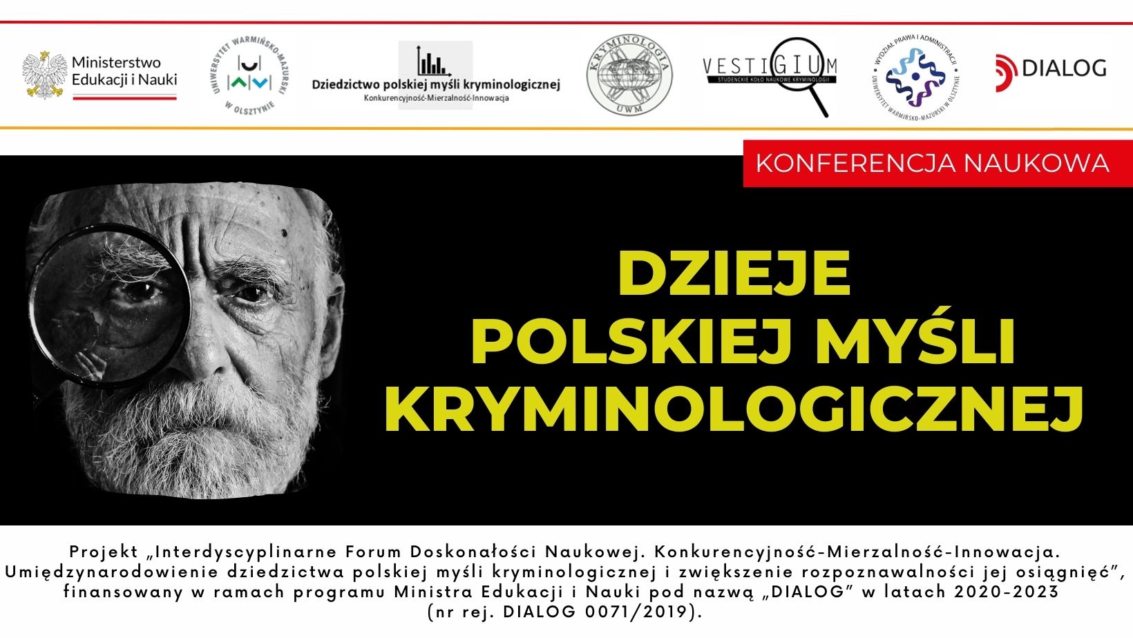 Katedra Kryminologii i Kryminalistyki Wydziału Prawa i Administracji Uniwersytetu Warmińsko-Mazurskiego w Olsztynie oraz Studenckie Koło Naukowe Kryminologii "Vestigium" zapraszają studentów, doktorantów oraz młodych pracowników nauki do udziału w ogólnopolskiej konferencji naukowej pt. "Dzieje polskiej myśli kryminologicznej", która odbędzie się w dniu 31 maja 2023 r. w godz. 8-16 w auli C1 na Wydziale Matematyki i Informatyki (Regionalne Centrum Informatyczne).