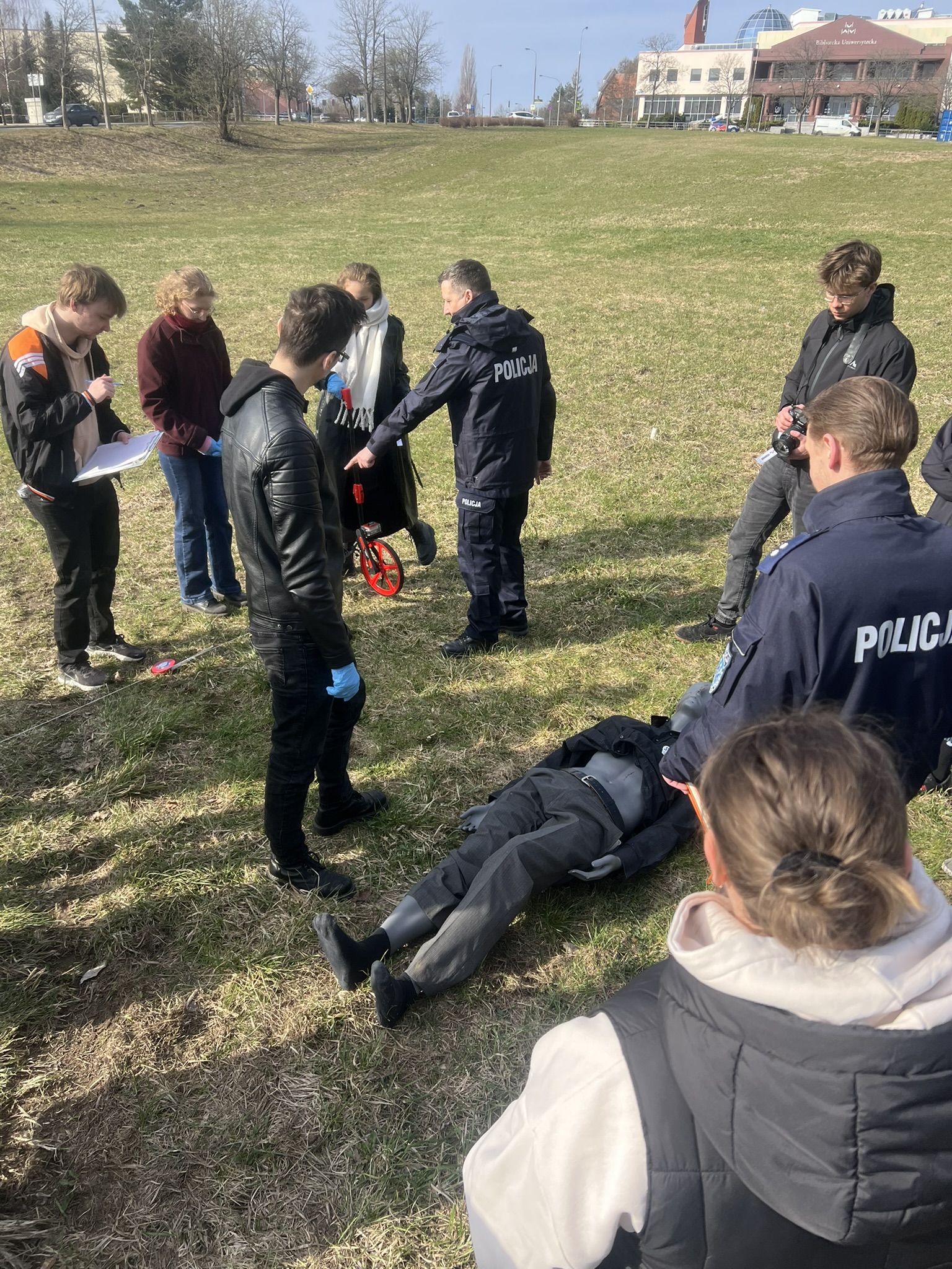 W dniu 30 marca br. członkowie Koła Naukowego Kryminalistyki „Na Tropie”, działającego przy Katedrze Kryminologii i Kryminalistyki Wydziału Prawa i Administracji Uniwersytetu Warmińsko-Mazurskiego w Olsztynie, mieli okazję uczestniczyć w wyjątkowych zajęciach przeprowadzonych przez funkcjonariuszy Referatu Techniki Kryminalistycznej Komendy Miejskiej Policji w Olsztynie pod kierownictwem Pana podkom. Tobiasza Wiśniewskiego. Zorganizowane warsztaty stanowiły niezwykle cenne doświadczenie dydaktyczne, umożliwiające bezpośrednie zapoznanie się z praktycznymi aspektami pracy techników kryminalistyki. Uczestnicy mieli możliwość wzięcia udziału w symulacji miejsca zdarzenia, obejmującej m.in. wykonywanie oględzin, sporządzanie dokumentacji procesowej, zabezpieczanie śladów oraz wykorzystanie specjalistycznego sprzętu. Zaangażowanie funkcjonariuszy, ich profesjonalizm oraz otwartość w dzieleniu się wiedzą i doświadczeniem znacząco przyczyniły się do pogłębienia kompetencji studentów oraz lepszego zrozumienia specyfiki pracy w obszarze kryminalistyki. Tego rodzaju inicjatywy mają istotne znaczenie dla kształcenia przyszłych specjalistów oraz budowania trwałej współpracy pomiędzy środowiskiem akademickim a Policją.