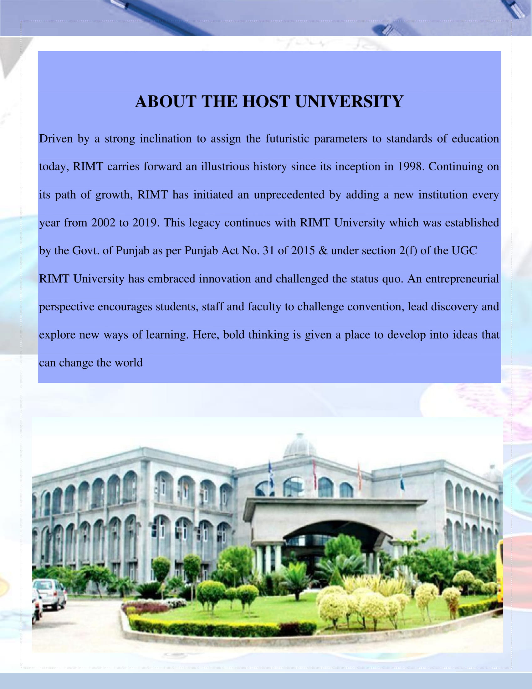 Informujemy, że została podpisana umowa o współpracy pomiędzy UWM a Uniwersytetem RIMT (Pendżab, Indie), w której uczestniczył będzie Wydział Prawa i Administracji. Będą realizowane wspólne badania, konferencje, wymiana pracowników. Dr hab. Jarosław Moszczyński, prof. UWM (koordynator współpracy) został zaproszony na krajową konferencję organizowaną przez RIMT w dniach 7-8 grudnia 2020 jako invited speaker i wygłosił dwa referaty na temat subiektywizmu w badaniach kryminalistycznych oraz multiindywidualności pisma ręcznego. Ze względu na pandemię konferencja odbyła się online. Otwiera się pole do szerokiej wymiany doświadczeń.