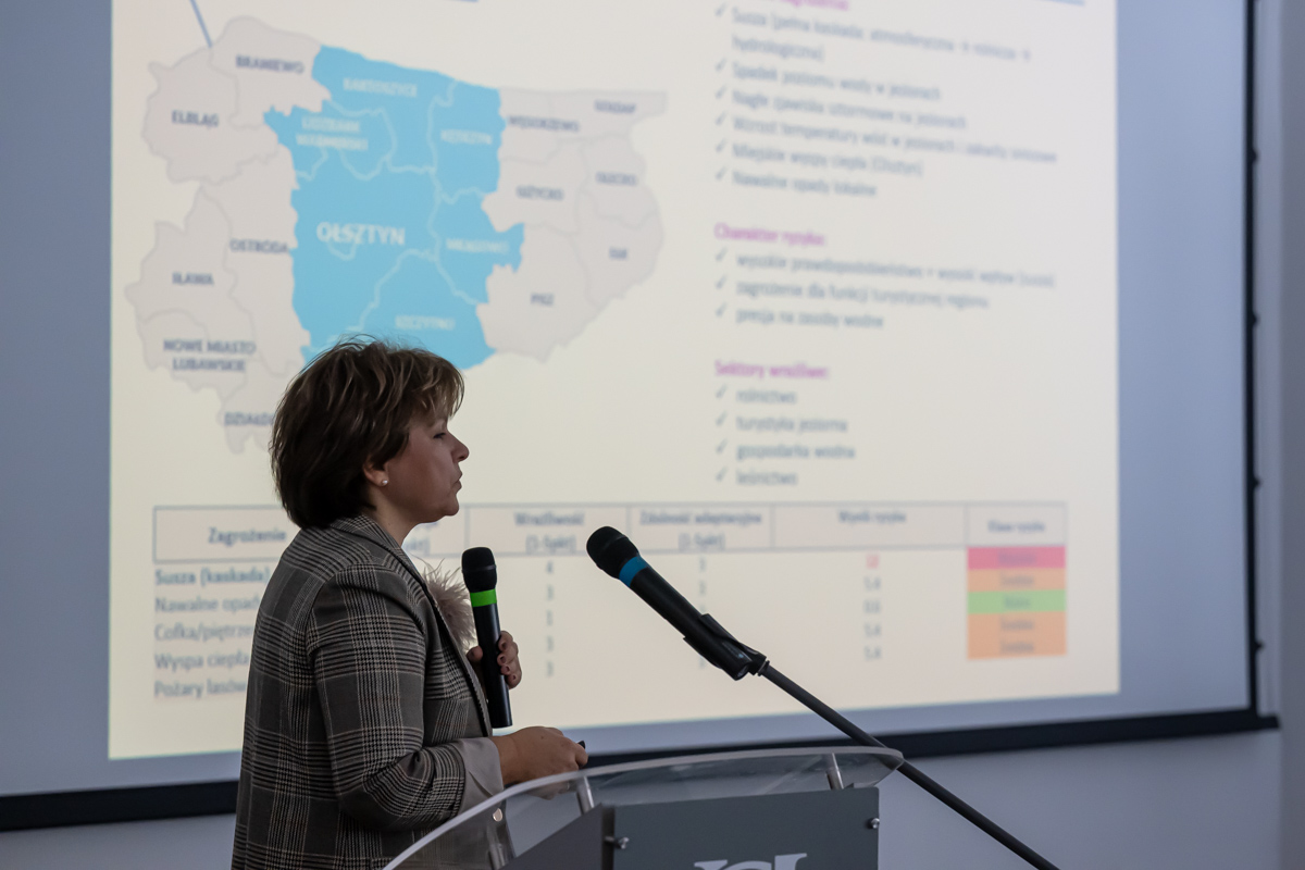 Naukowczyni zwróciła również uwagę na to, że nie możemy kopiować pewnych wzorców, które są np. opracowane dla miast, obszarów metropolitalnych czy przemysłowych, ponieważ nasz region wymaga szczególnego podejścia. Zachodnia część, zwłaszcza Elbląg, Żuławy, to obszary ryzyka powodzi. Z kolei na wschodzie mocno odczuwamy skutki suszy. W tej części regionu pojawił się również inny problem – zagrożenie pożarowe lasów.