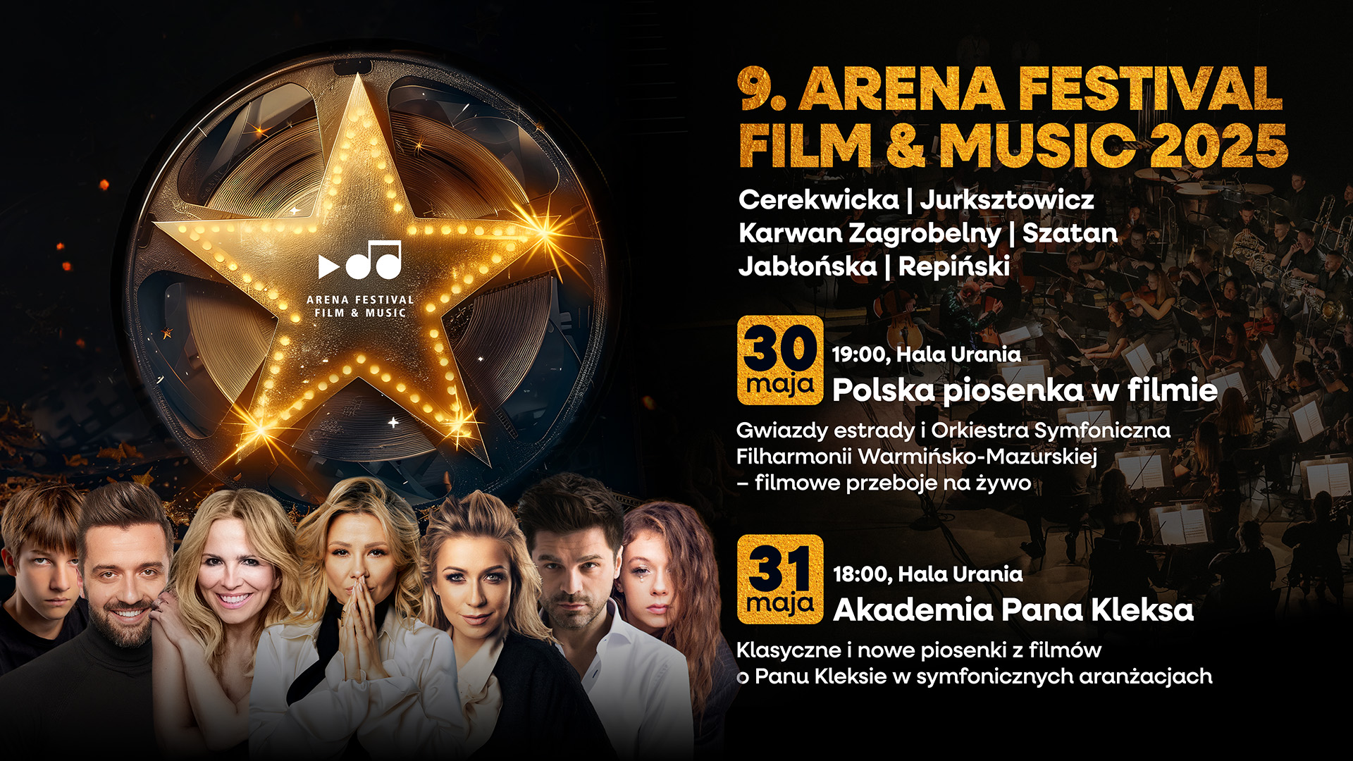 Już 30 i 31 maja Hala Urania w Olsztynie zamieni się w prawdziwą świątynię dźwięku i filmu! IX Arena Festival Film&Music to dwudniowa muzyczna podróż przez historię polskiego kina – od przedwojennych klasyków po współczesne hity!