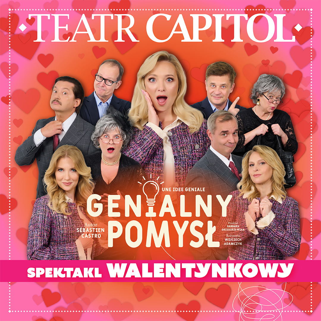 Teatr Capitol przedstawia walentynkową ofertę spektakli w Olsztynie. W dniu 15 lutego 2026 r. w Auli im. Anny Wasilewskiej (ul. Kościńskiego 11) zaprezentowany zostanie komediowy spektakl „Genialny pomysł”. Przedstawienie odbędzie się dwukrotnie: o godz. 15:00 oraz 18:00.